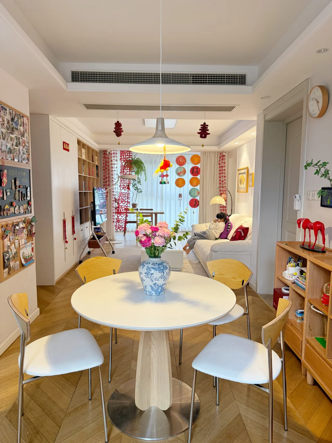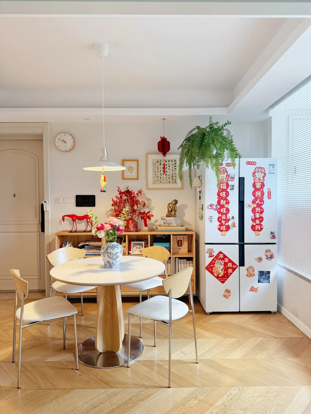 除去餐边柜深度,餐厅宽度还有2.4m。