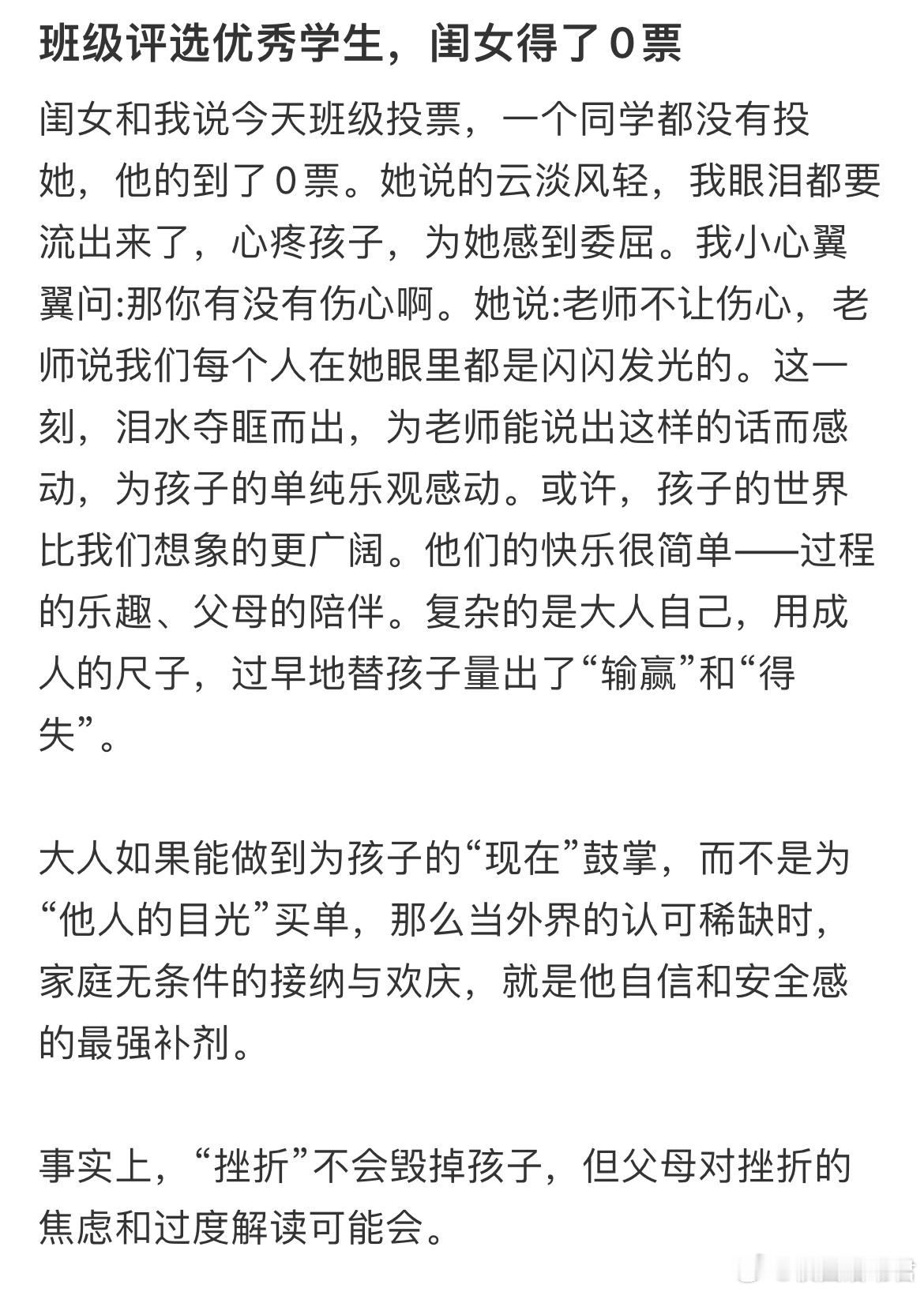 班级评选优秀学生,闺女得了0票