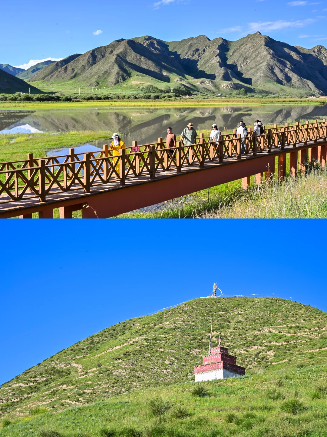 阳光正好,风吹动经幡,色彩像调色盘一样铺满山谷。