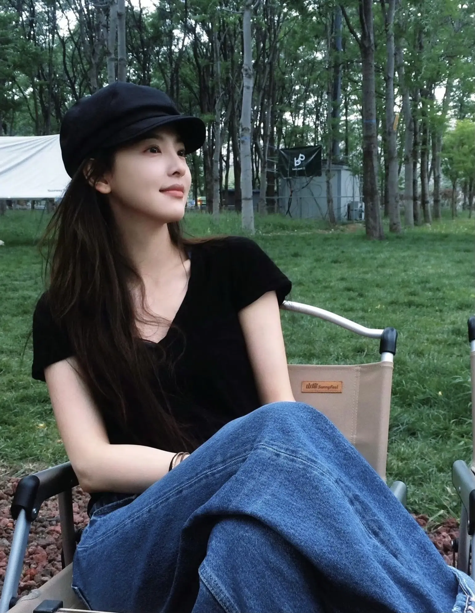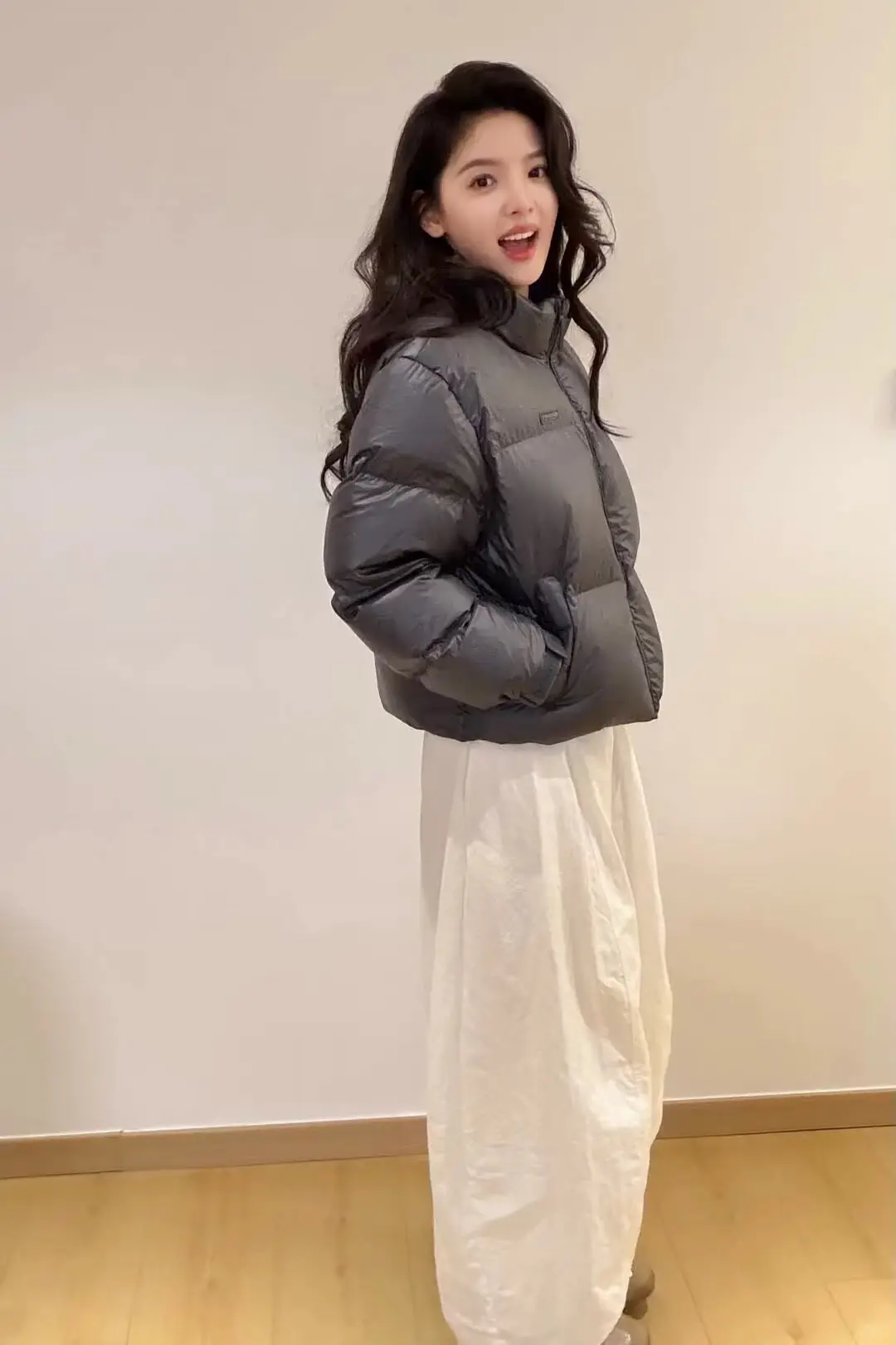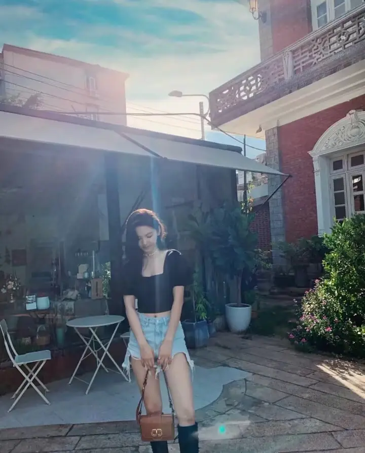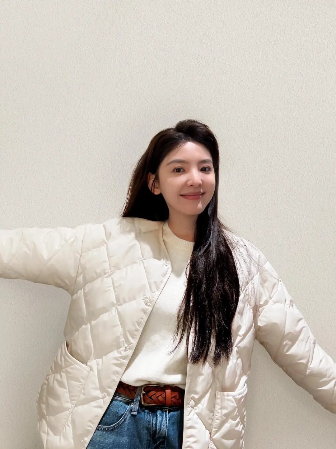 刘亦菲这条裤子挺养生,毕竟降温了肚脐眼必须护住啊
