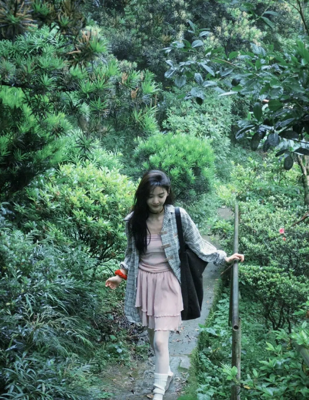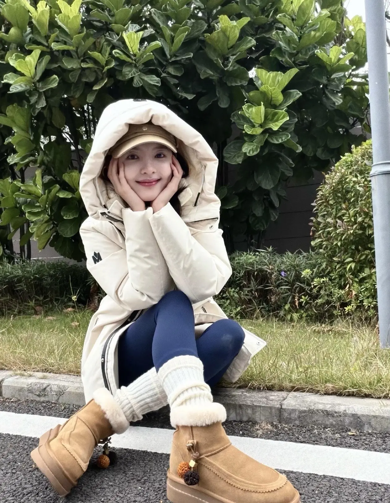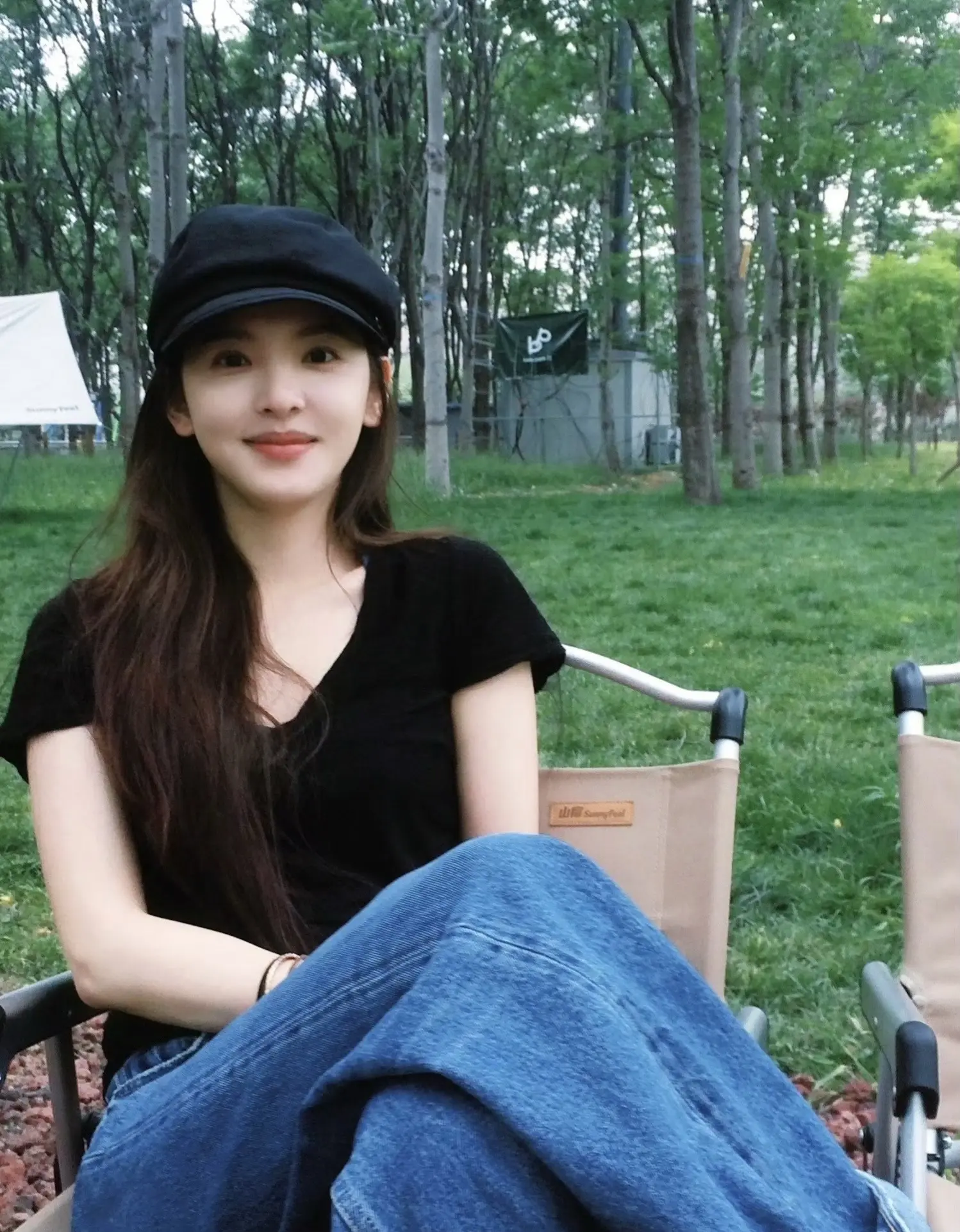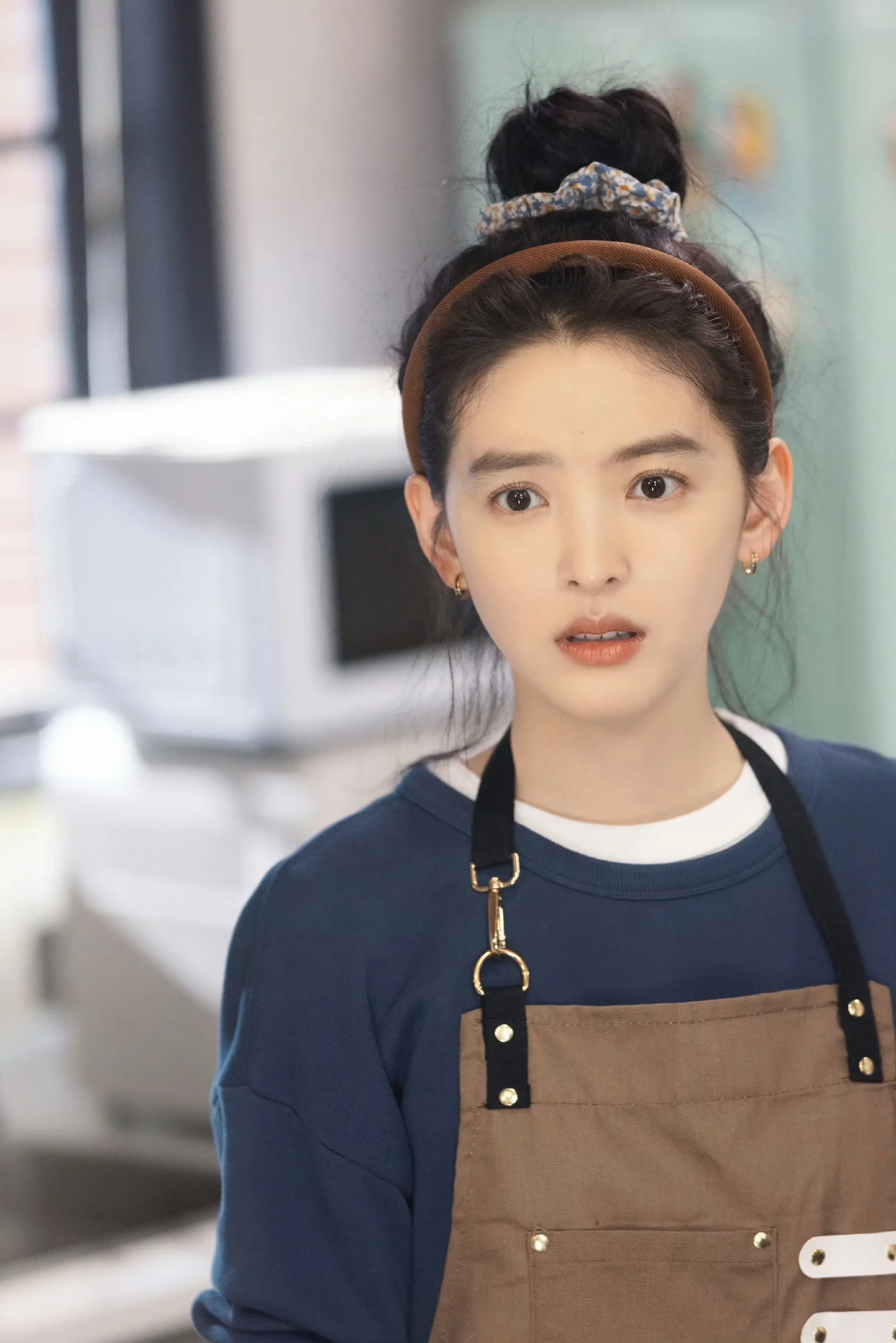 刘亦菲这条裤子挺养生,毕竟降温了肚脐眼必须护住啊