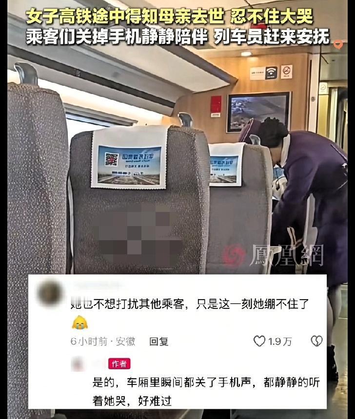 谁看了这个高铁上的画面不瞬间破防啊! 一句撕心裂肺的“我妈妈没了”,瞬间击溃了成年人所有的坚强,她明明在拼命往家赶,却还是没能见妈妈最后一面,这份遗憾和悲痛,隔着屏幕都让人鼻酸。 更戳人的是,车厢里没有一丝抱怨,乘客们不约而同关掉手机静音,用安静接住了她的崩溃,暖心列车员全程陪在身边,揉着她发白的手轻声安抚,这份陌生人的善意,比任何安慰的话都管用。 其实我们都懂,成年人的崩溃从不是突然的,只是这份突如其来的永别,实在让人撑不住。 那些默不作声的陪伴,不是冷漠,是最懂分寸的共情,是知道千言万语都抵不过给她一个宣泄的空间。 我们总以为来日方长,却忘了意外和离别从不会提前打招呼,趁身边人还在,多抱抱多陪伴,才是最不辜负彼此的方式。 你有没有过突然被陌生人的善意暖到的瞬间? 当时是不是也觉得,人间值得?