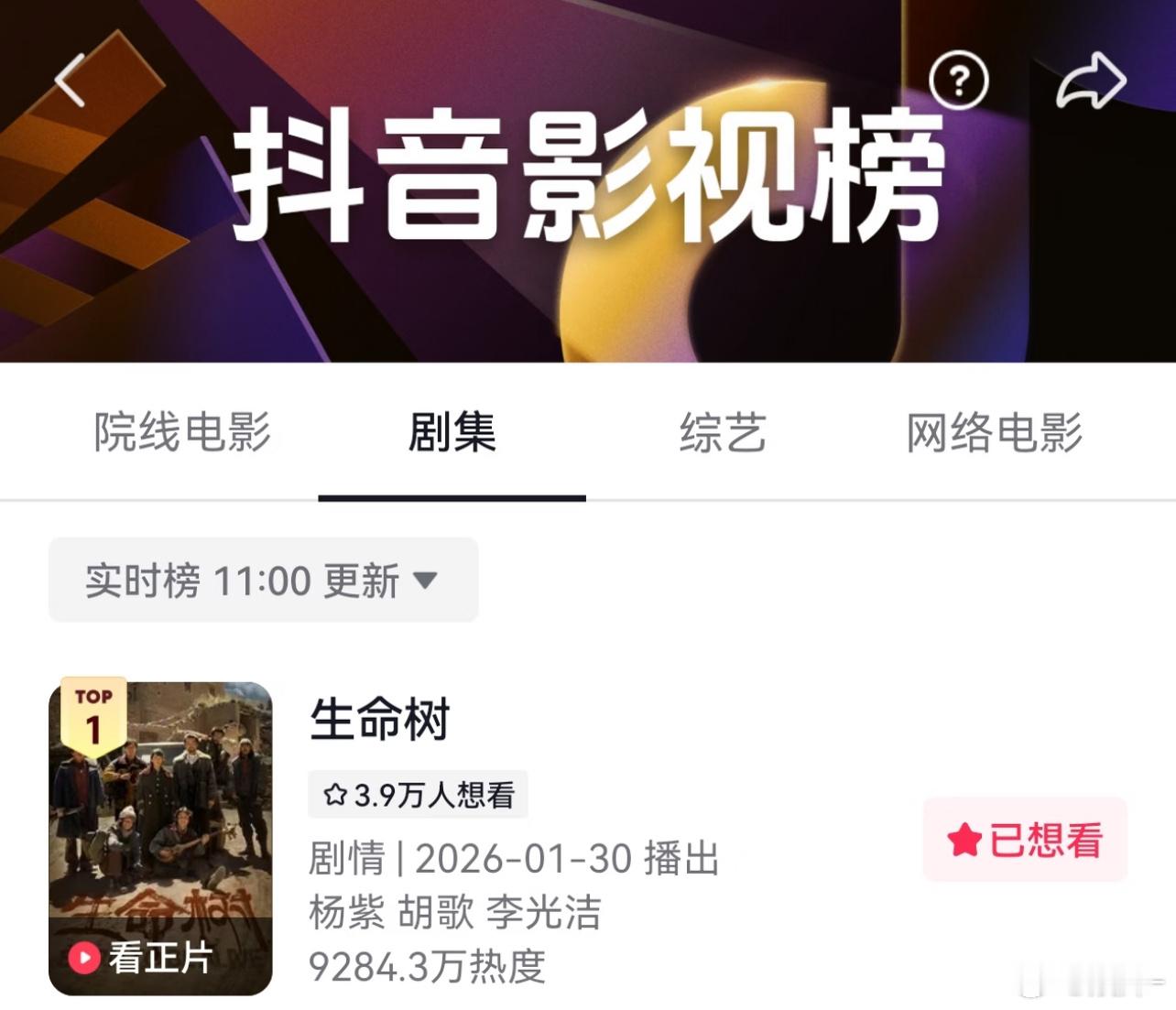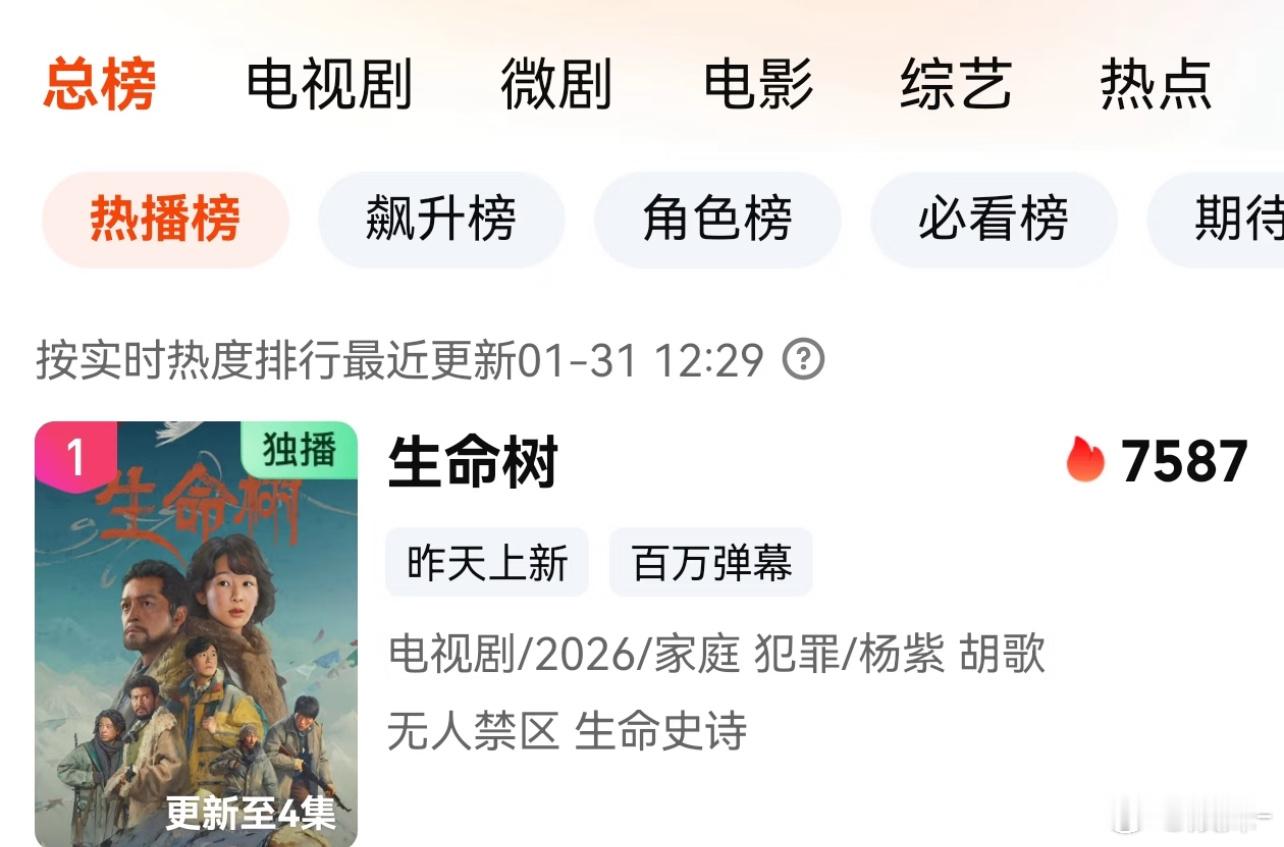 生命树这种正剧很难爆开的,要慢慢发酵,能稳住平播争取热播就好了,粉丝没必要太焦虑,相信杨紫