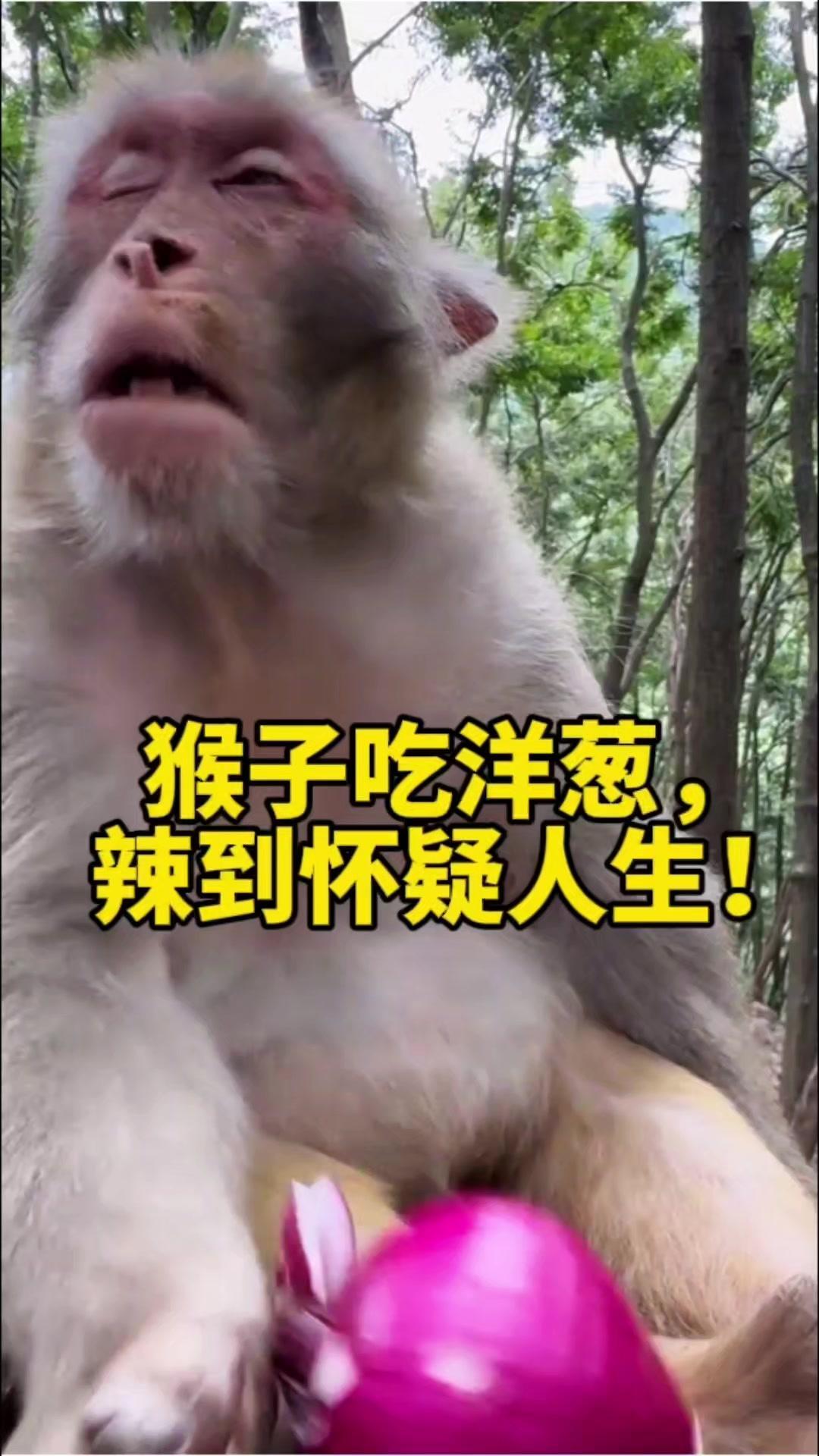 猴子第一次吃洋葱,被呛到疯狂甩头,表情像极了被辣到的我本人! 刚咬一口就眉头紧锁,嘴巴张得老大,眼睛瞪得溜圆,估计心里在想“这玩意儿到底是啥啊,怎么辣得我灵魂出窍?” 一边上蹿下跳一边疯狂漱口,那狼狈又搞笑的样子,简直和我吃生蒜时一模一样,隔着屏幕都能感觉到他被辣到的崩溃!