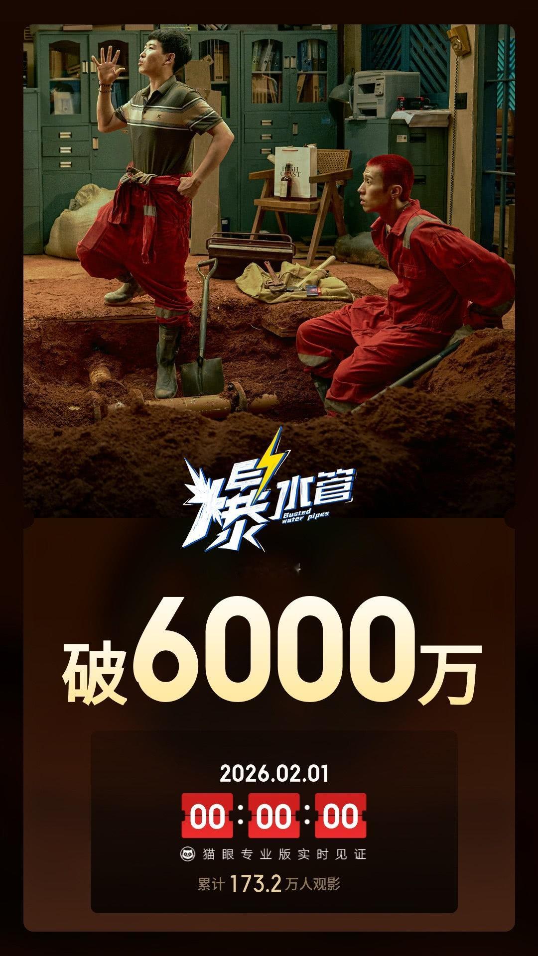彭于晏 今日💥爆水管累计票房破6000万 💥2026年1月观影首看电影爆水管到现在还上头呢感谢剧组与双向奔赴我们才有好电影看👏一直以来很喜欢喜剧,但是完完全全纯喜剧模式近来没有特别,反而是喜人那些节目有深的印象,但是这部《爆水管》的问世,刷新了我对喜剧的又一个观念,它不老套,能有强烈共鸣,虽然也有缺点但不重要今天记录下一些路过影院或者取票时的小惊喜~应该能破亿……电影爆水管