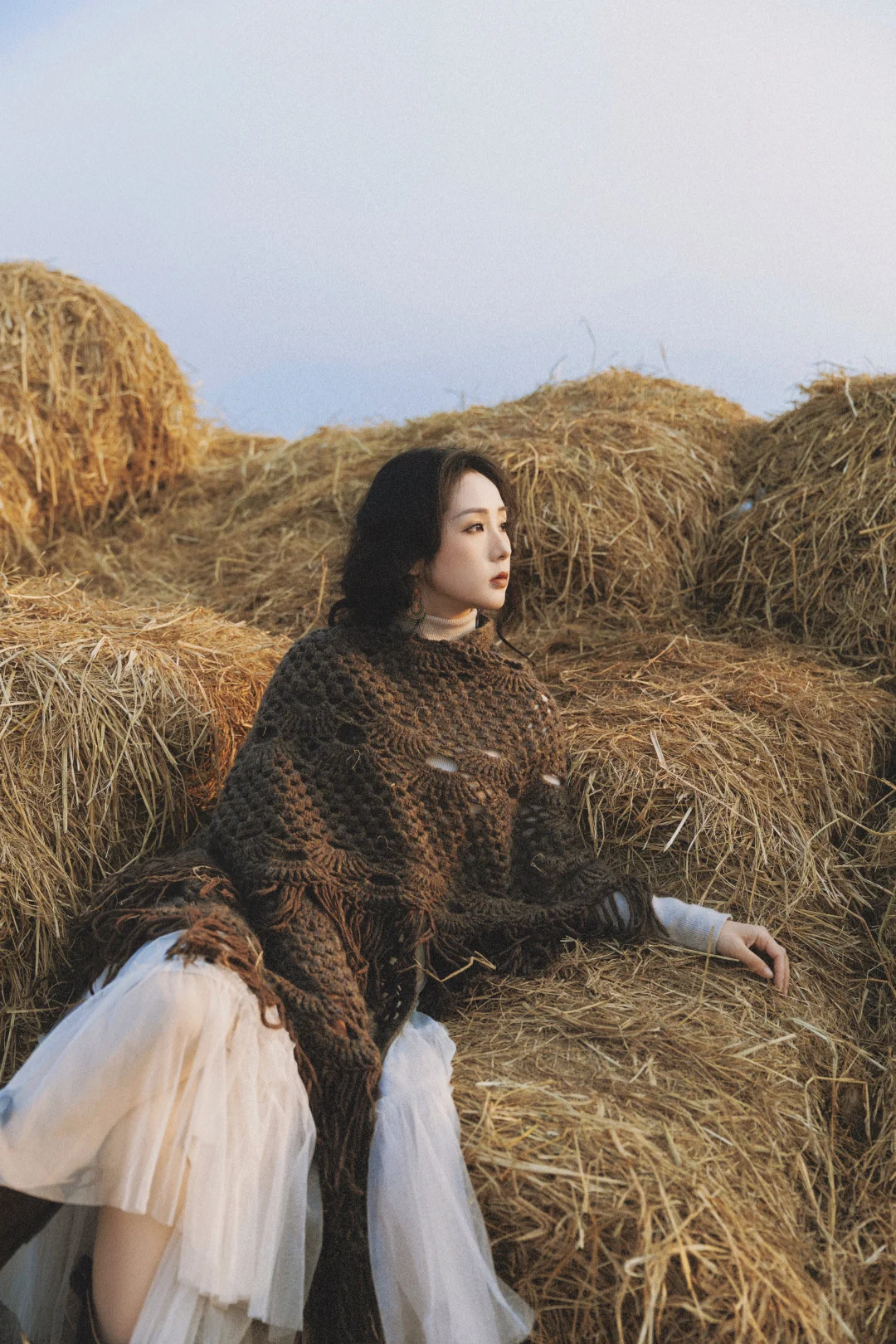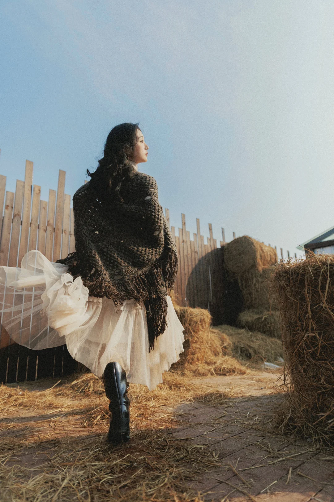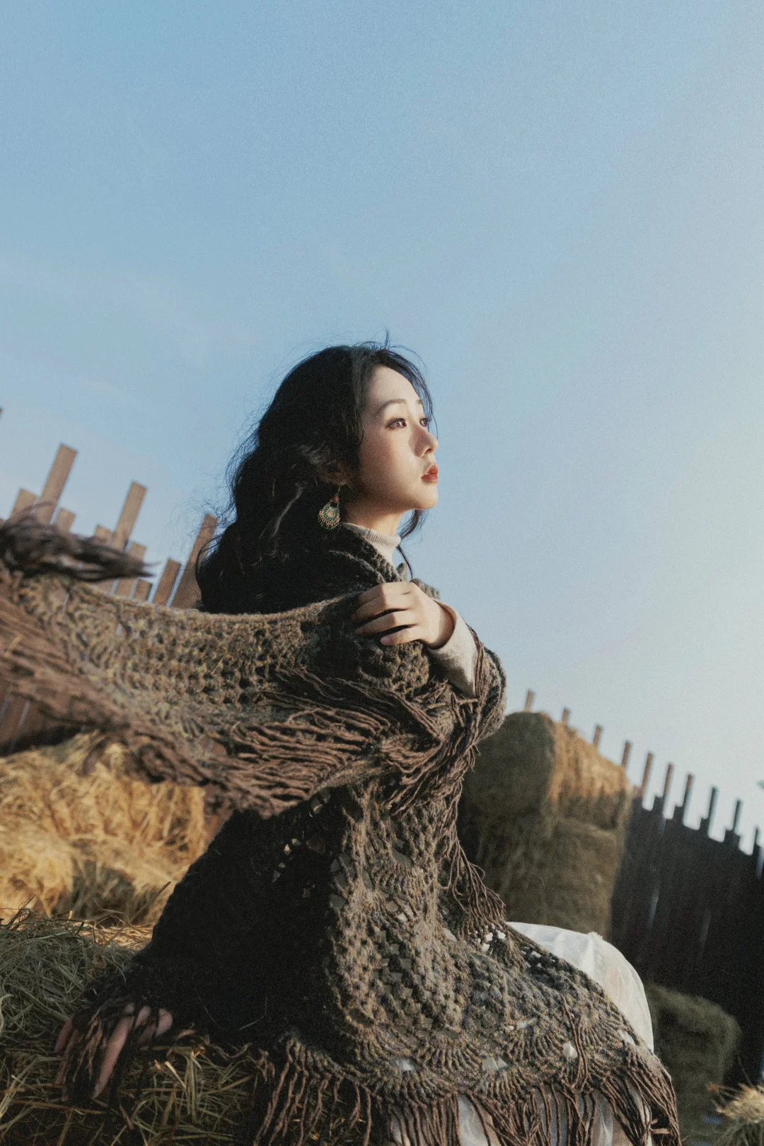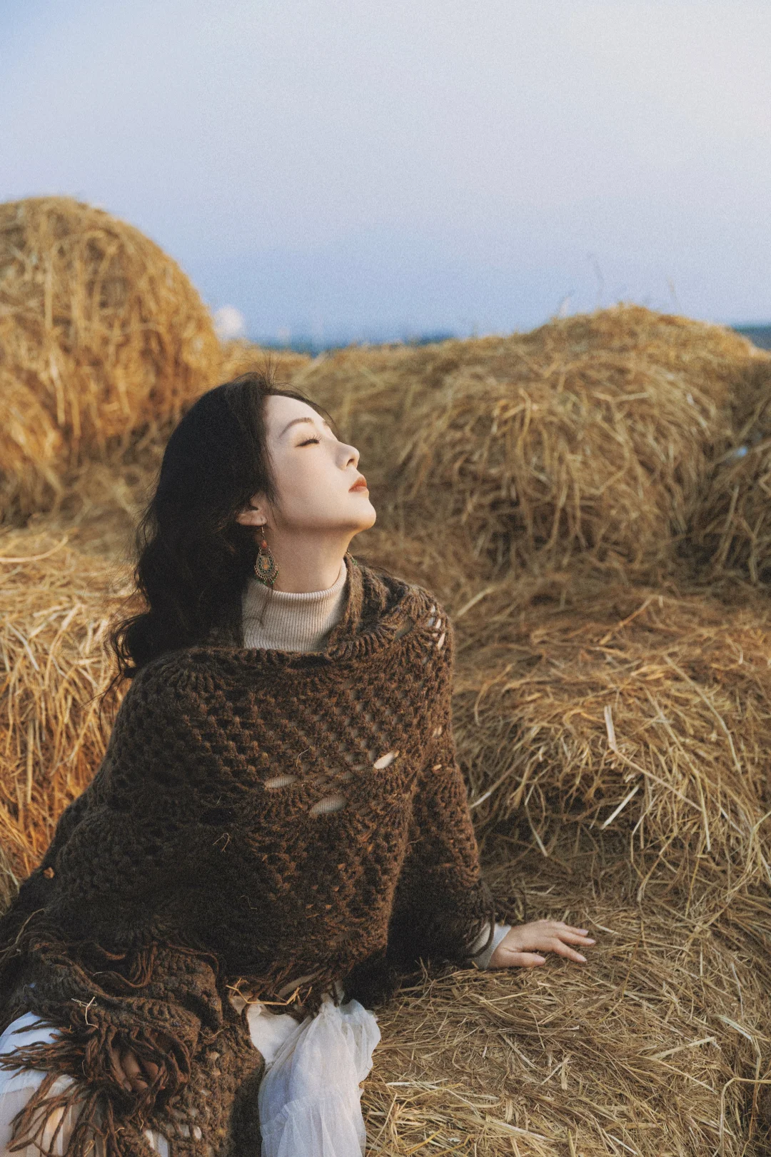✓光线运用:优先侧逆光 / 逆光,发丝会被阳光镶上金边,草垛也会呈现暖金色,氛围感直接拉满;顺光拍则更清晰,适合拍全身照
