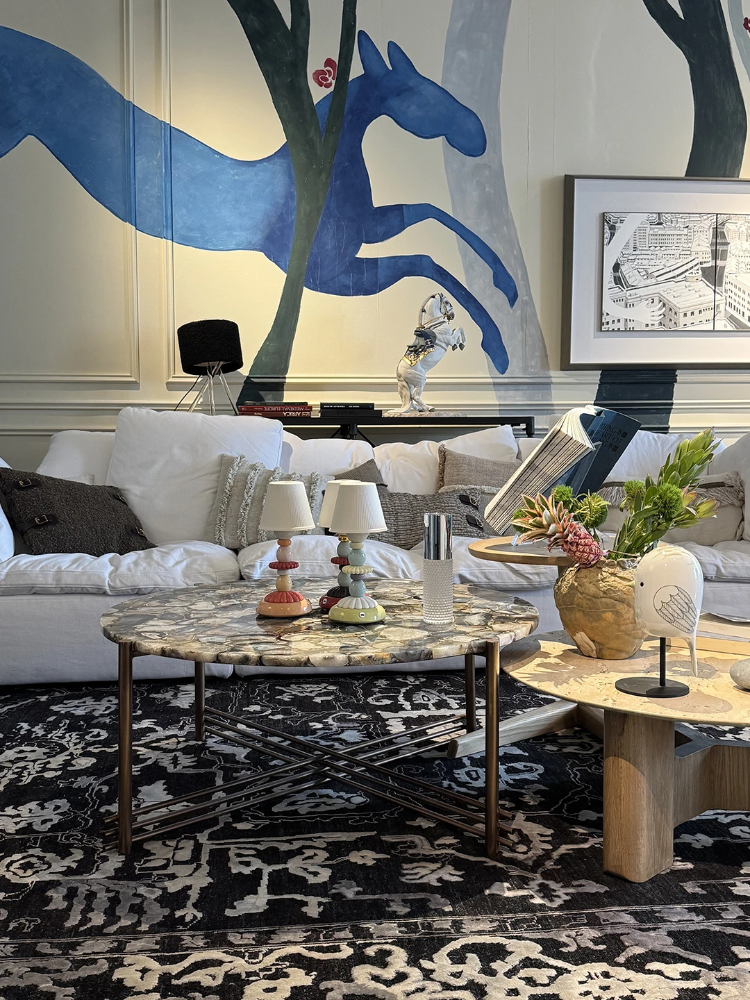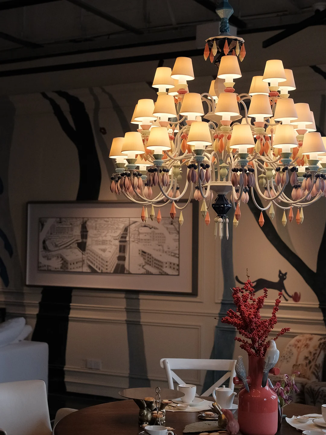 雅致Lladró的陶瓷摆件和灯具,在这个100多年的空间里尤为出彩,融合多种植物的荧火之光充电台灯、绽放的夜之花系列、五彩斑斓的黑色台灯、生动的小鸟和活泼的猴子花瓶,当你走进去,就能感受到浓浓的生活仪式感。