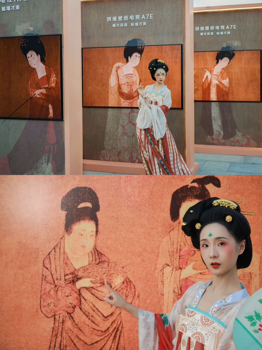怎么能如此还原古画的色彩和细节,服饰、茶盏、妆面的纹理都清晰可见❗️