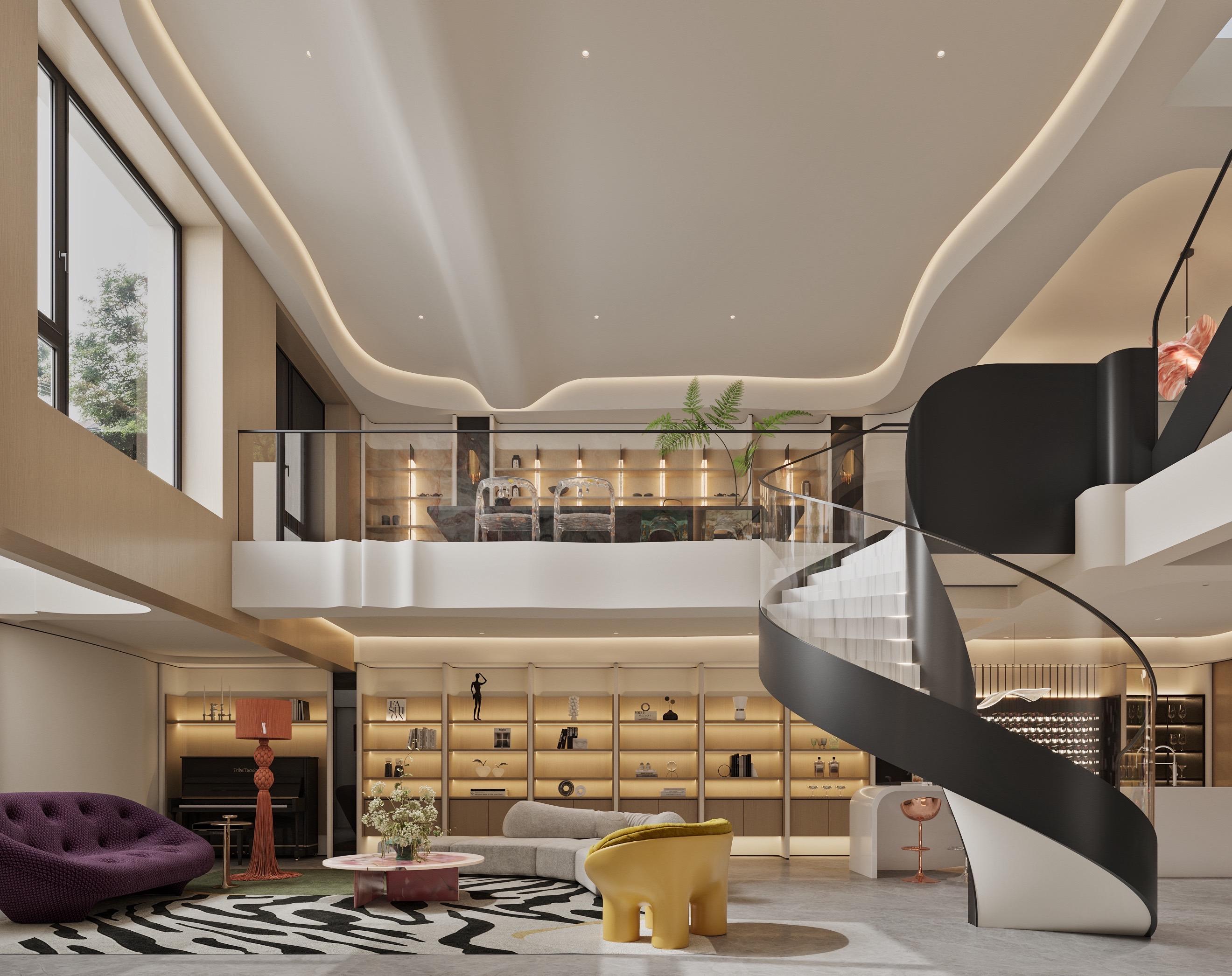 昆明优雅女王的秘密宫殿!时尚法式别墅设计。地下层挑空会客厅+星空酒吧...