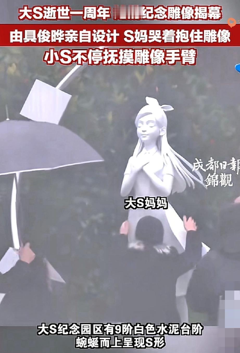 大S忌日雕像揭幕仅1小时,全网直呼丑得可怕,这份满是心意的纪念,竟成了众人吐槽的槽点! 谁也没想到,具俊晔耗时一年、倾尽心血打造的雕像,揭幕瞬间就让现场氛围变了味,本该肃穆的纪念,却因雕像和大S本人相差甚远,彻底陷入争议。 具俊晔的用心其实藏在各处,9级S形台阶藏着专属爱情密码,选址对着大S爱的烟火景观,甚至为了雕像停工减重、放弃遗产,可这份深情,却被雕像的外形彻底掩盖。 网友吐槽雕像毫无大S的灵动气质,更像不知名卡通人物,可艺术总监却说这不是复刻样貌,而是留存她的精神。 纪念从不是做给外人看的,具俊晔用自己的方式寄托思念,本就无关他人审美,可公众却执着于雕像的相似度,让私人的哀思变成了公开的审视。 其实对逝者的怀念,从来不在外在的模样复刻,而在心底的惦念从未消散。 你觉得纪念逝者,该重外在还原还是内心的情感寄托?