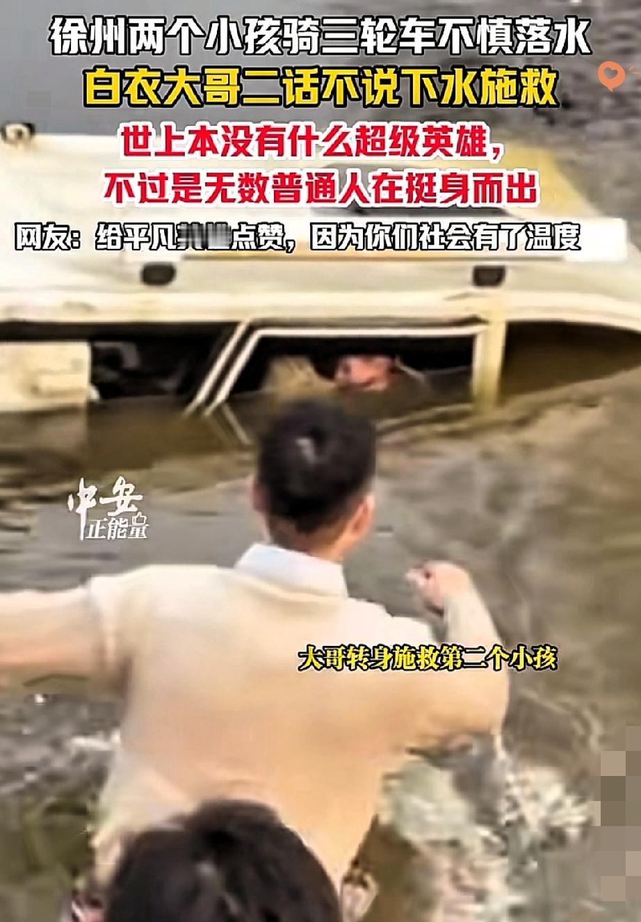 这才是值得表扬的! 江苏这对夫妻真的太赞了! 开车偶遇三轮车坠河,两个孩子被困其中,丈夫想都没想立马下车跳河救人,妻子在岸边焦急叮嘱,夫妻俩的果断,硬生生从冰冷河水里抢回两条小生命! 寒冬的河水刺骨,可丈夫的心里只有救人的念头,不顾危险奋力打开车门救孩子,喊来路人帮忙的那一刻,更是把善意的力量传递了出去。 反观最初围观的人,犹豫不前的模样,和这对夫妻的果敢形成了鲜明对比。他们只是普通的路人,却在关键时刻守住了心底的善良,没有丝毫犹豫的伸手,是刻在骨子里的良知。 从来都没有天生的英雄,只有挺身而出的普通人,这份不假思索的善意,比任何豪言壮语都动人。 善良从不是选择,而是刻在心底的本能,在别人需要时搭把手,这才是最珍贵的人间温暖。 如果换做是你,遇到这样的情况,会第一时间挺身而出吗?