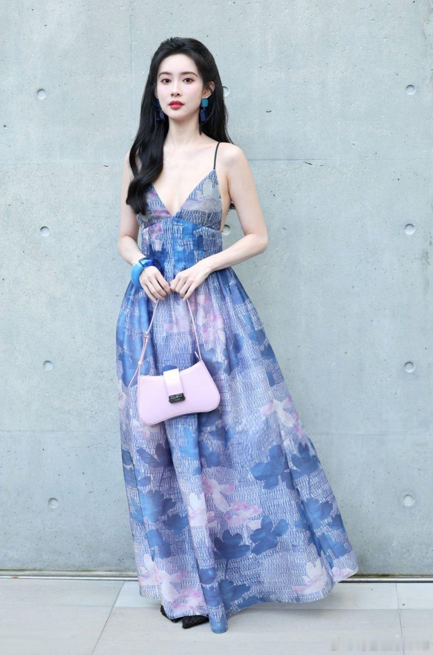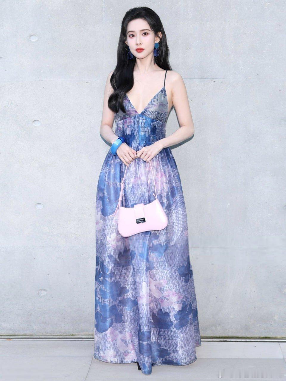 写真孟子义米兰时装周蓝色深V装扮惊艳全场