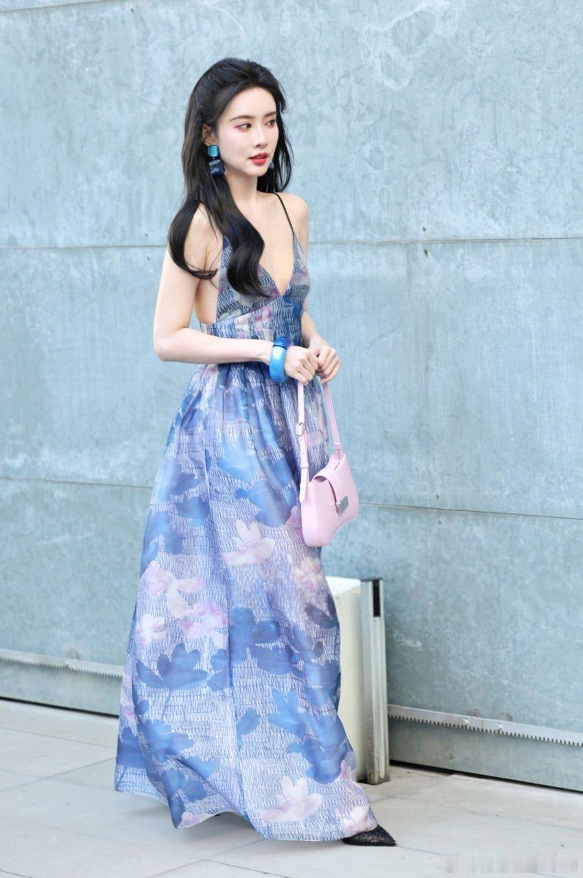 写真孟子义 米兰时装周蓝色深V装扮惊艳全场