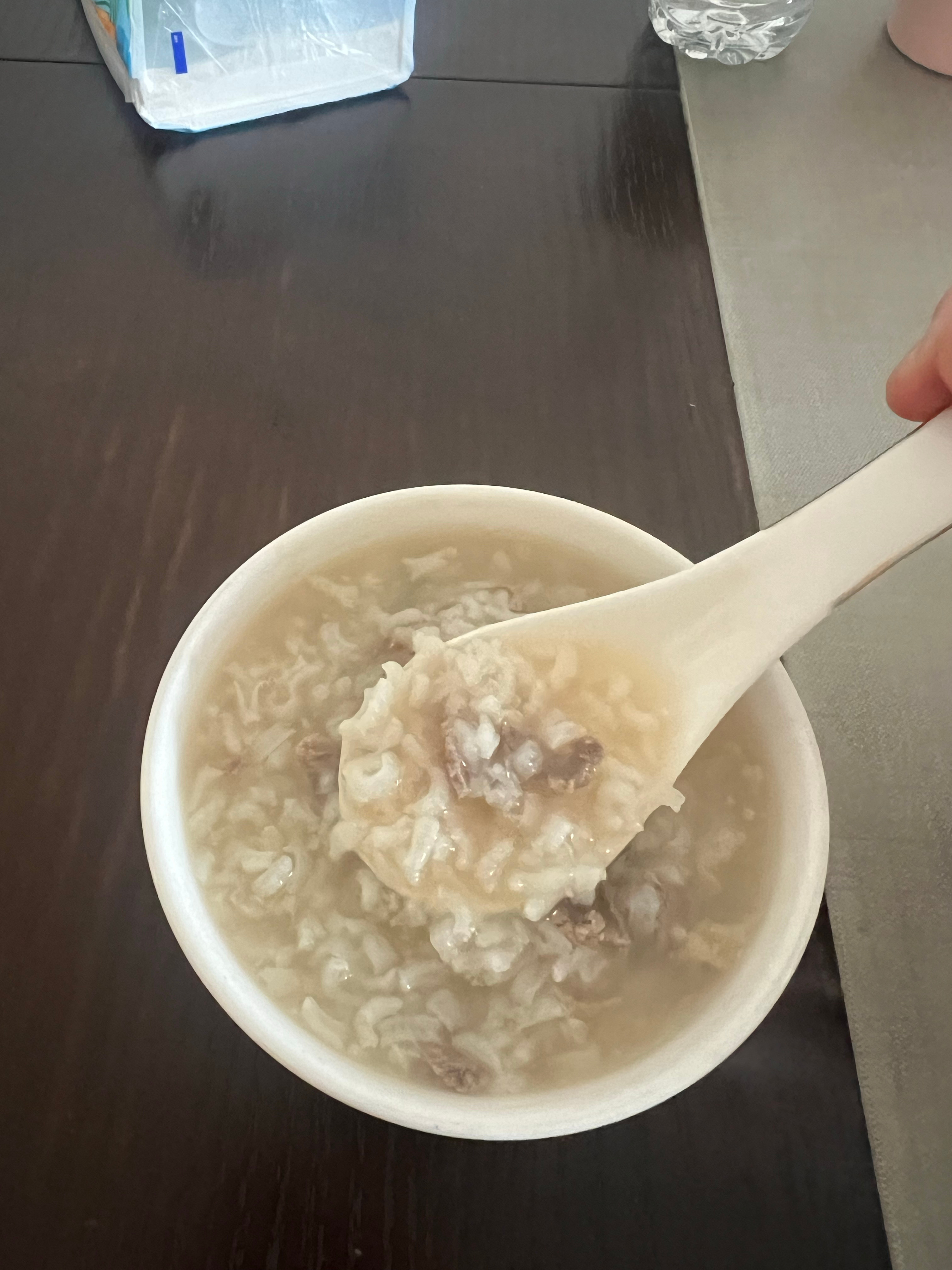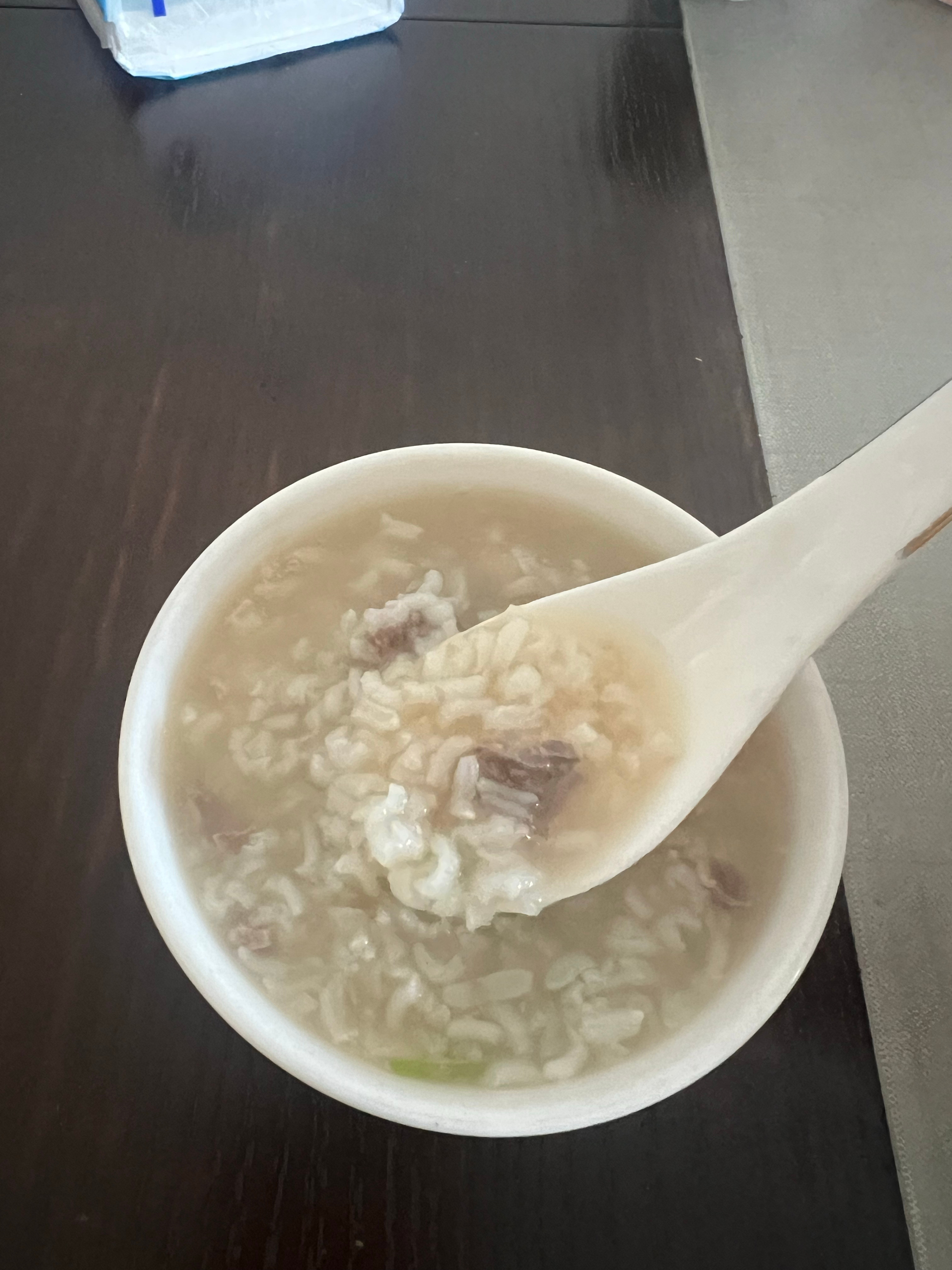 煮好的牛肉粥最后加上一些香菜和葱提味