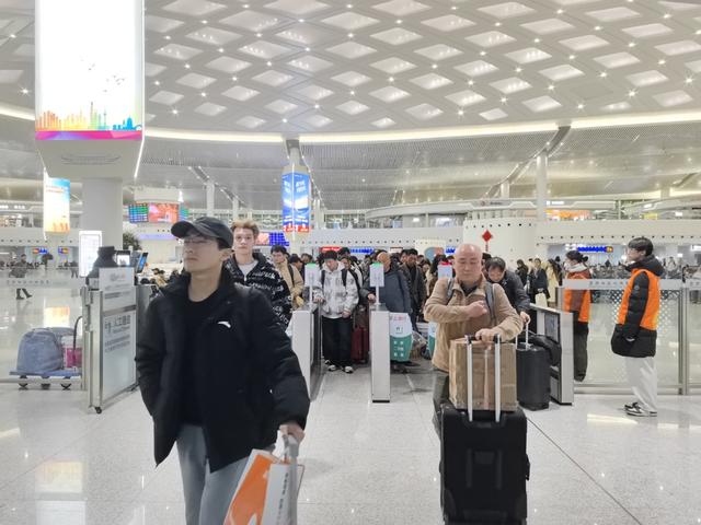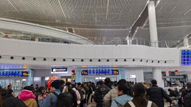 当天,候车大厅内人潮涌动,秩序井然。不少旅客携带着年货大包小包,在座椅上安心候车。