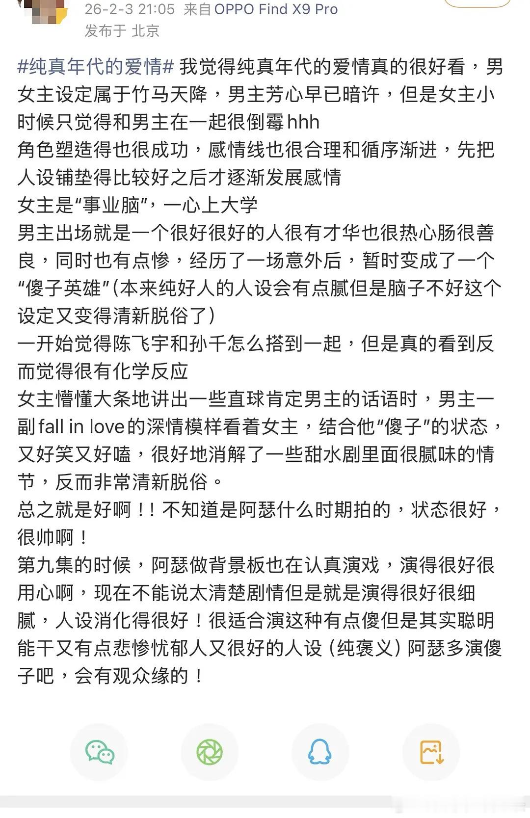 陈飞宇《纯真年代的爱情》看片反馈都很好不是粉丝都觉得这部剧很有可看性期待阿瑟的