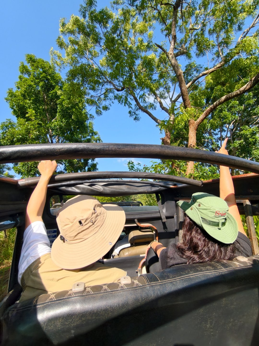 我们这次去的是 Hurulu Eco Park。敞篷吉普车直接钻进保护区,风从耳边吹过,视野完全打开。那种感觉很奇妙:不是在“看动物”,而是短暂进入了它们的生活。