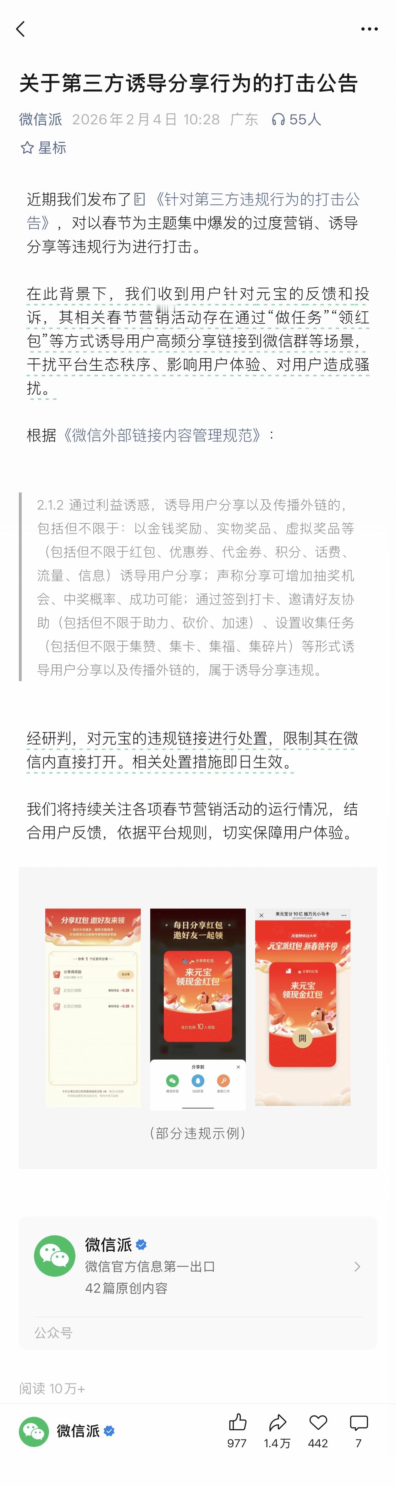 微信:屏蔽元宝红包链接狠起来连自家人都不放过,不过确实最近元宝红包在微信群发的太