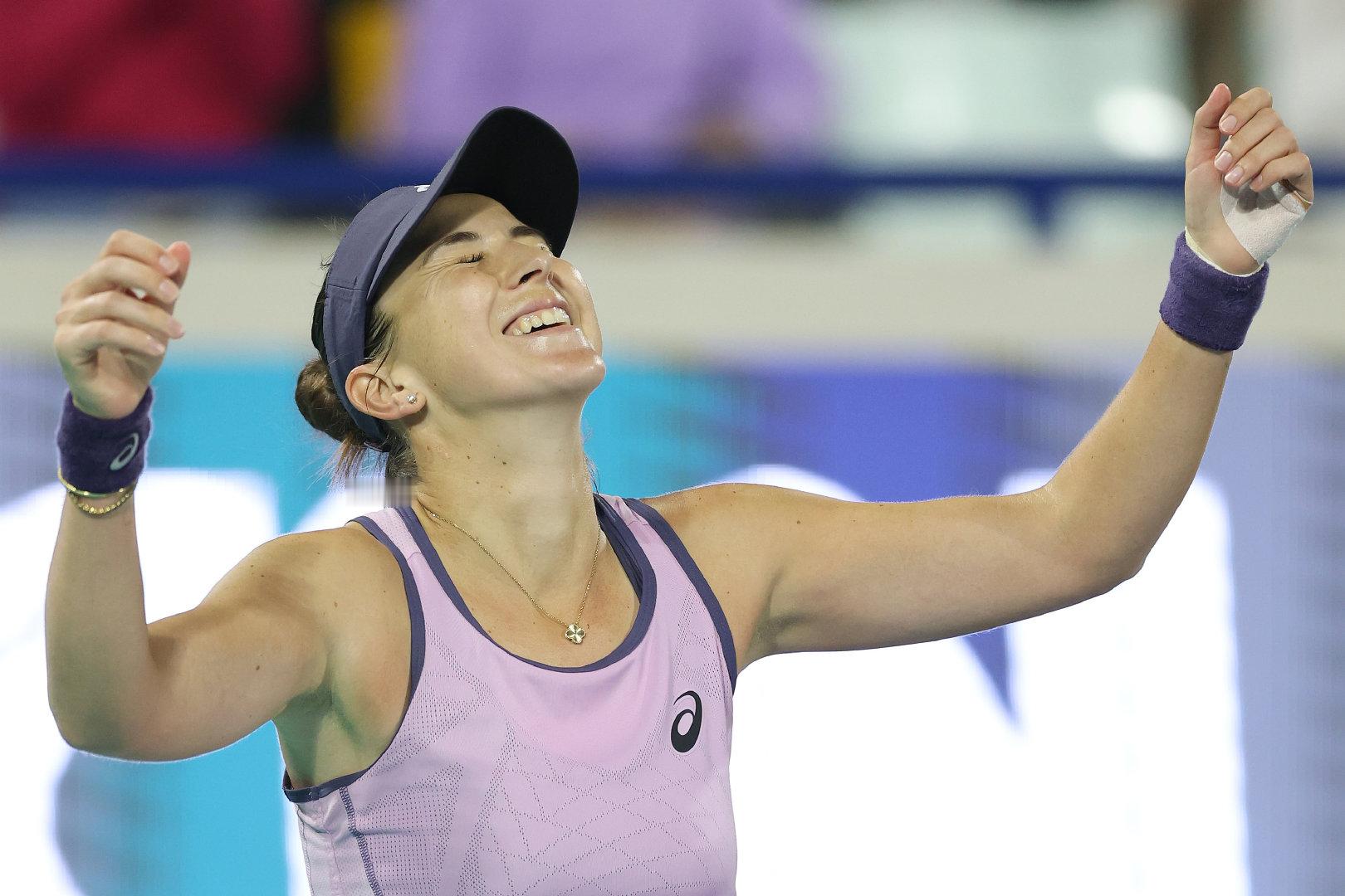 2025WTA500阿布扎比站,产后复出持外卡参赛的本西奇在决赛中以4-6/6-1/6-1逆转击败克鲁格,收获成为母亲后重返赛场的首个巡回赛冠军🏆