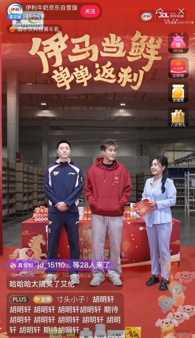 胡明轩空降伊利牛奶直播间啦,身穿训练服状态很松弛啊,小胡还透露了春节假期的安排,