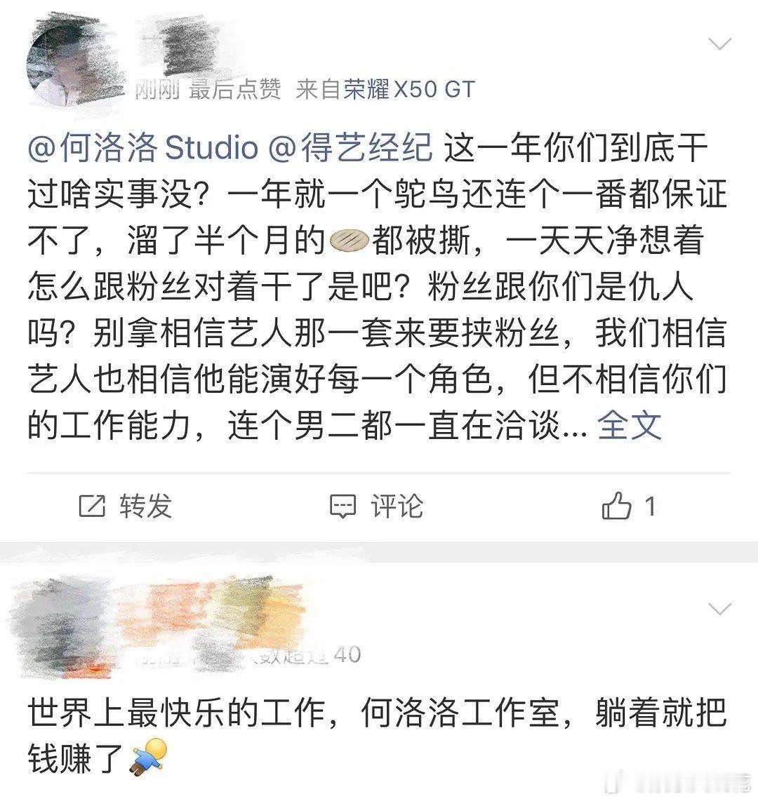 看到粉丝在撕工作室,你那几点男二一开始是他,现在换成了李歌洋这资源有点太虐了吧,好歹是选秀出道有一定粉丝的啊...