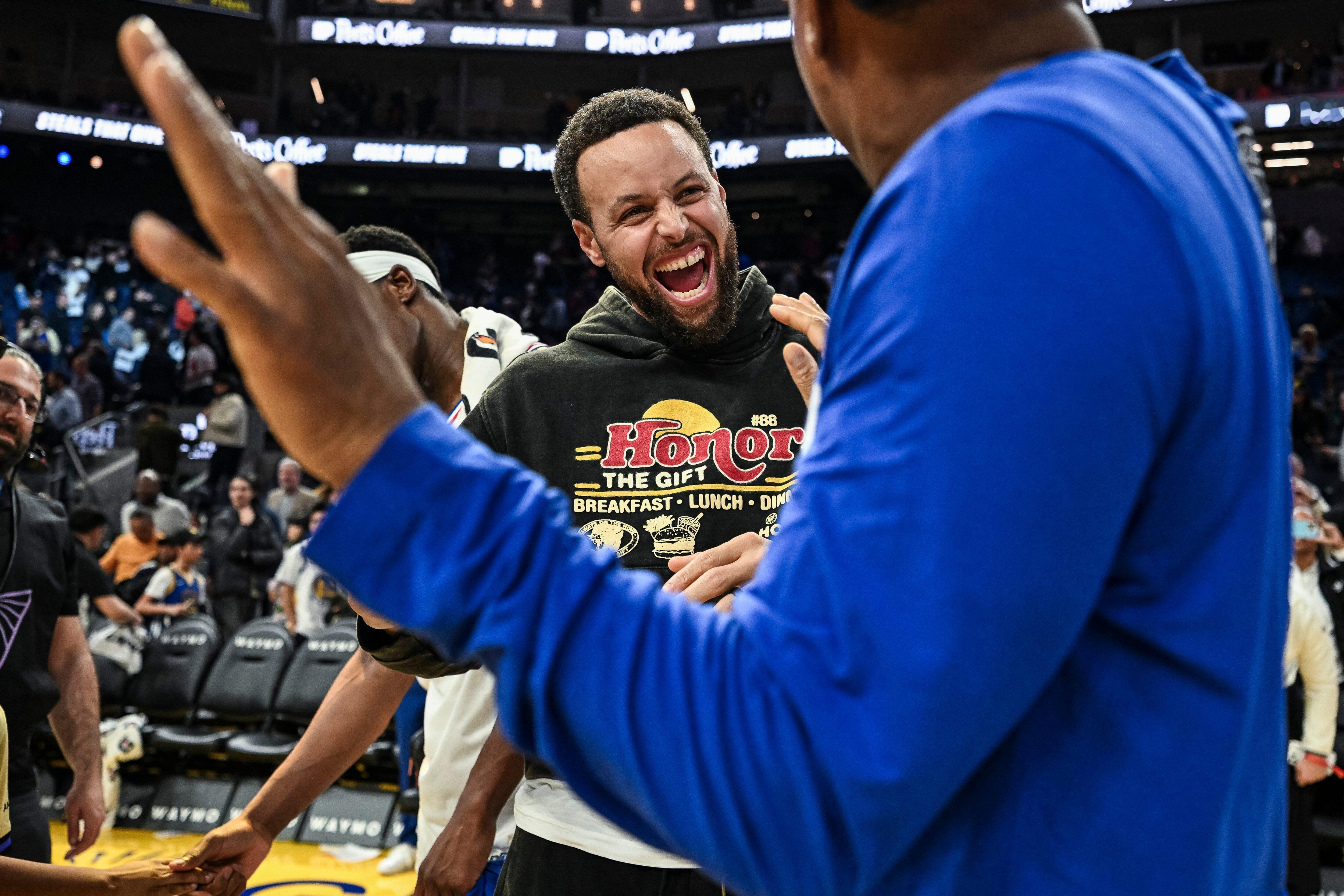 克莱最近和安踏签订了终身合同,库里今日在全明星赛场特意穿上KT11祝贺2026n