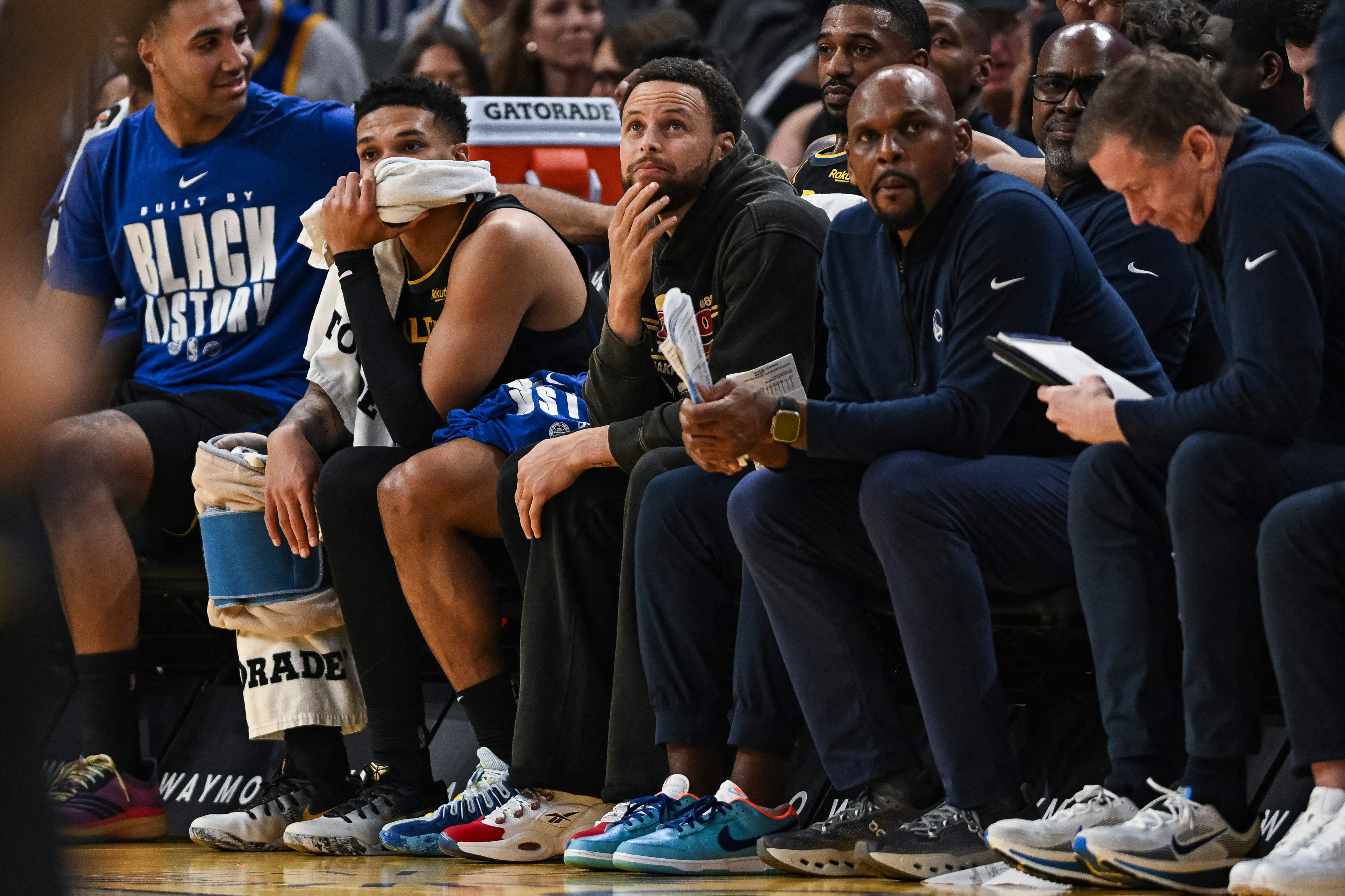 比赛期间的库里若有所思