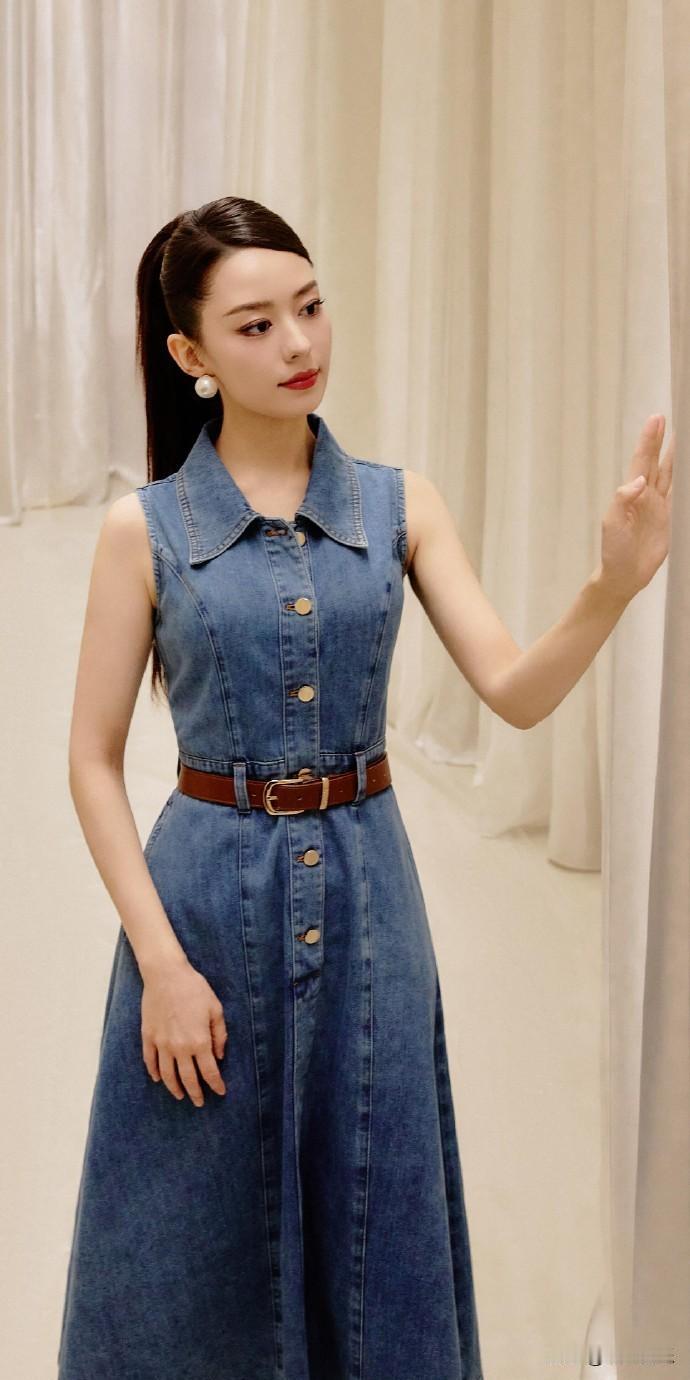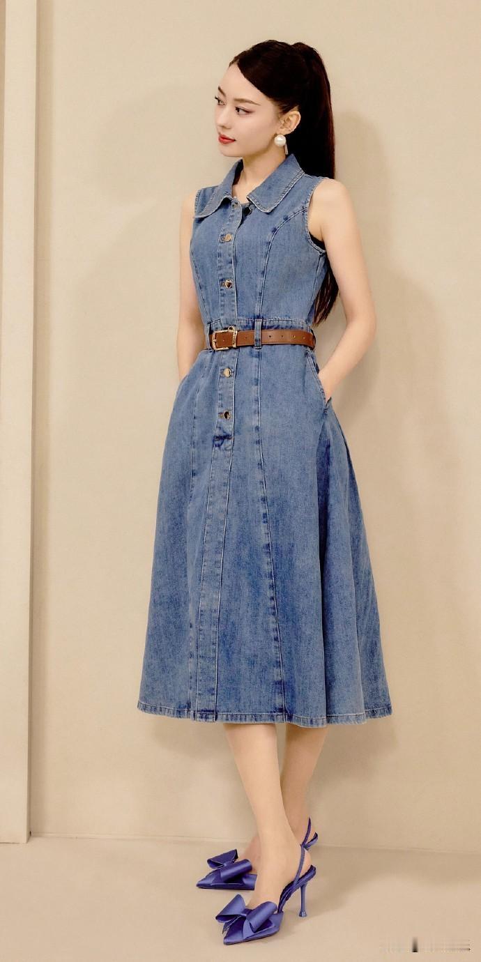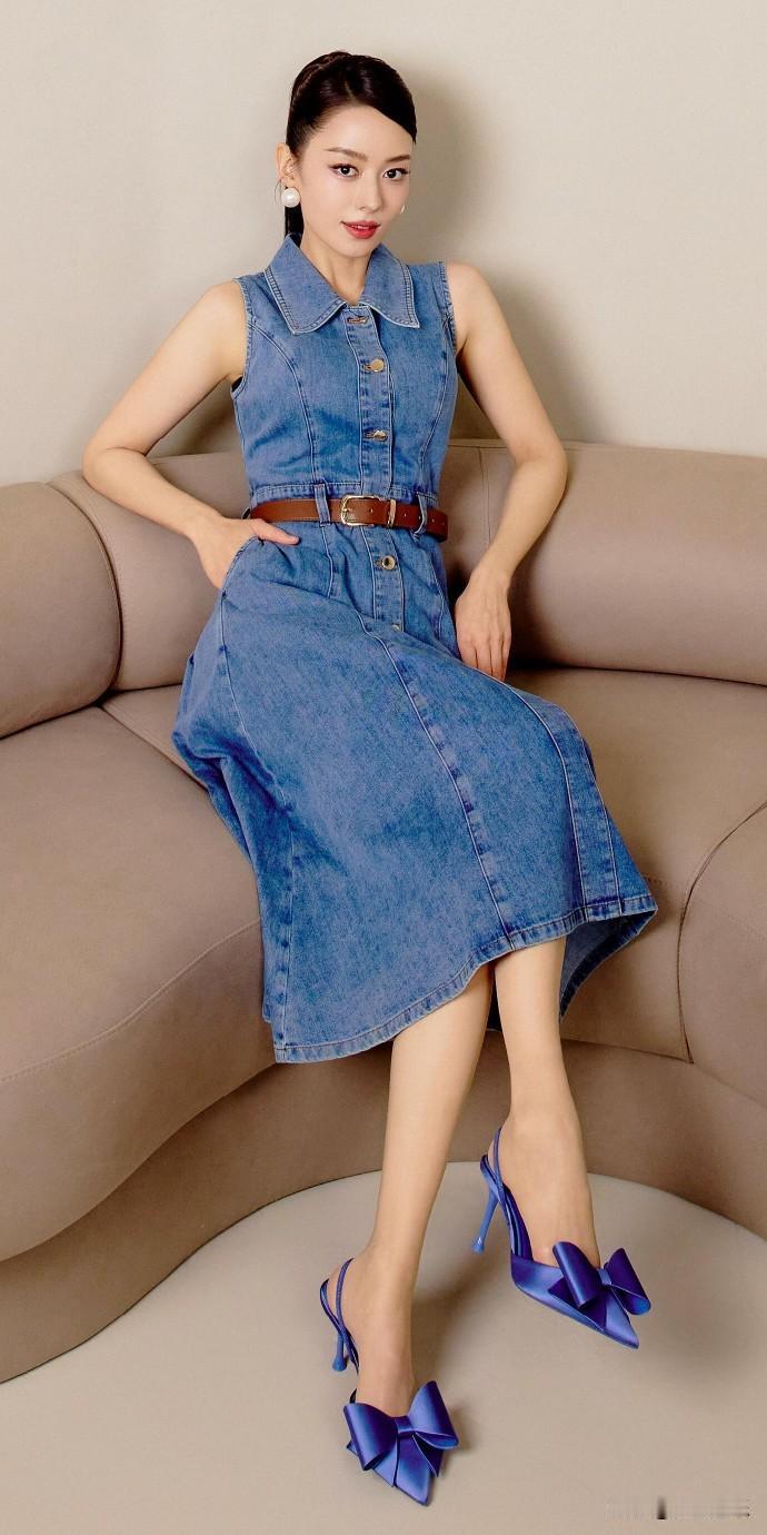 吉娜爱丽丝,水蓝牛仔穿搭