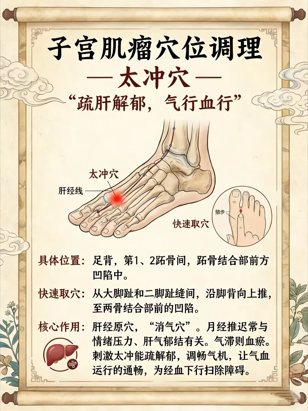 我每天会用片刻时间,通过轻揉小腹、推按肝经、温和运动等方式,帮助气血循环。这些外部的导引,如同为身体疏通“内在的河流”。