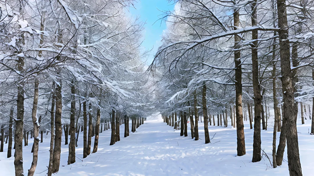 👉 走在被雪覆盖的林间小道🌲,每一步都像踩在云朵上☁️,回头看脚印串成小火车轨道超可爱!