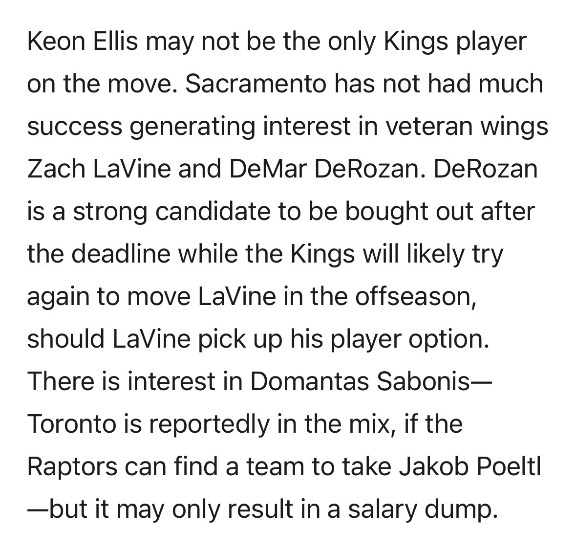ChrisMannix:德罗赞大概率会被国王在交易截止日后买断。