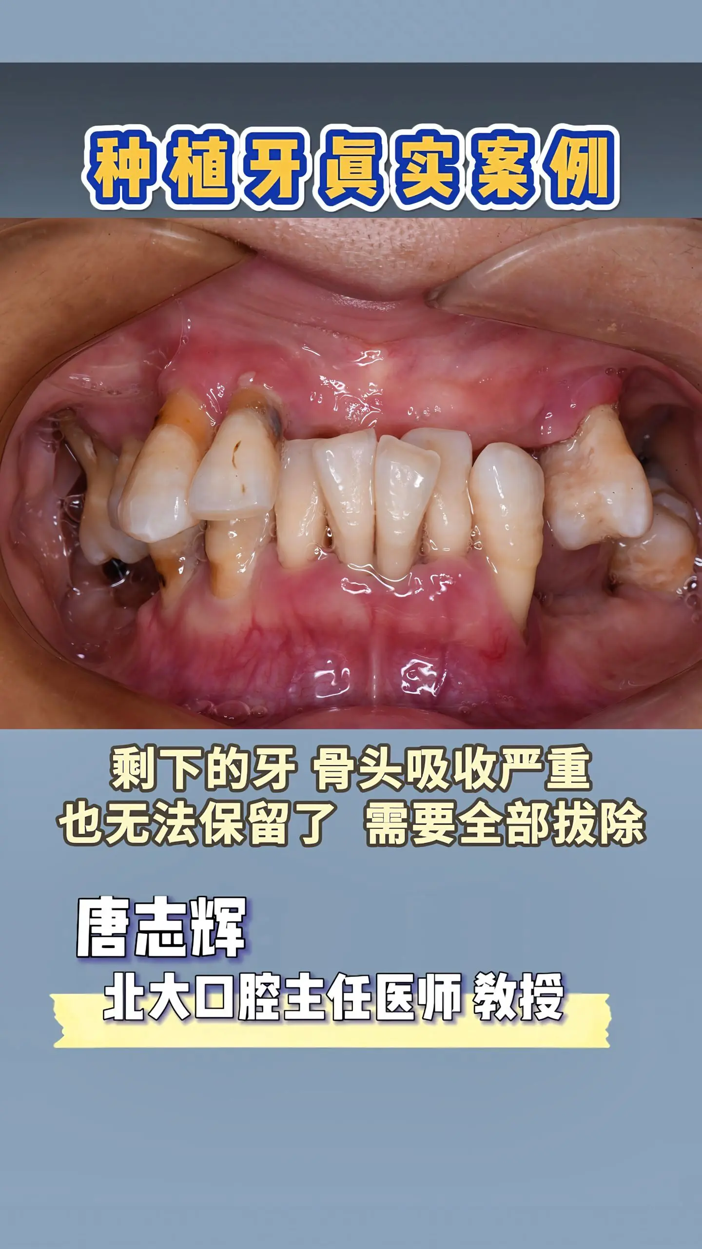 65岁,下颌只剩2颗牙了,来做种植牙!。该患者10多年前有多颗牙因龋坏...