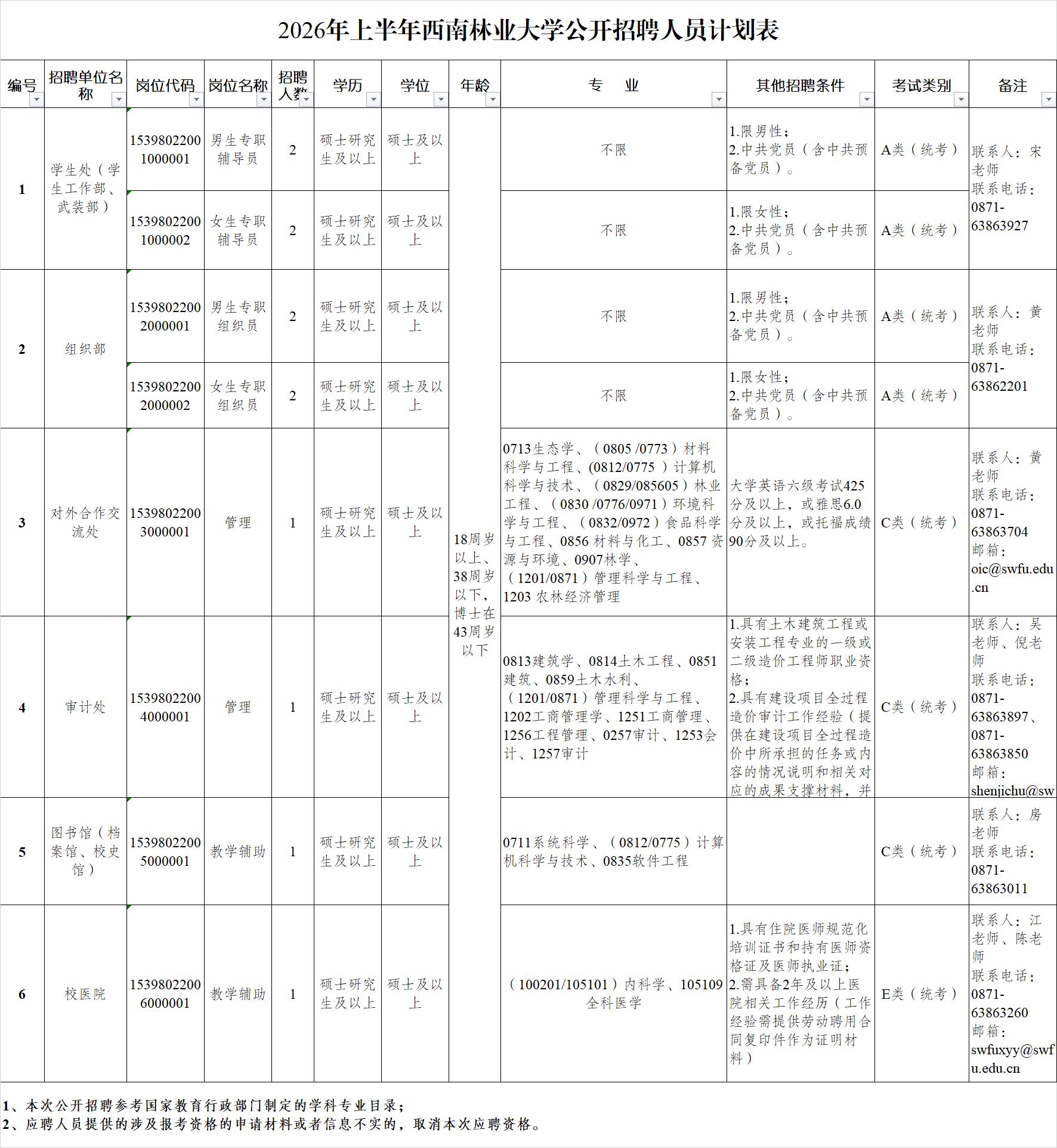 多少分能上岸西南林业大学?。2026年,其中——辅导员4名(男岗2名...