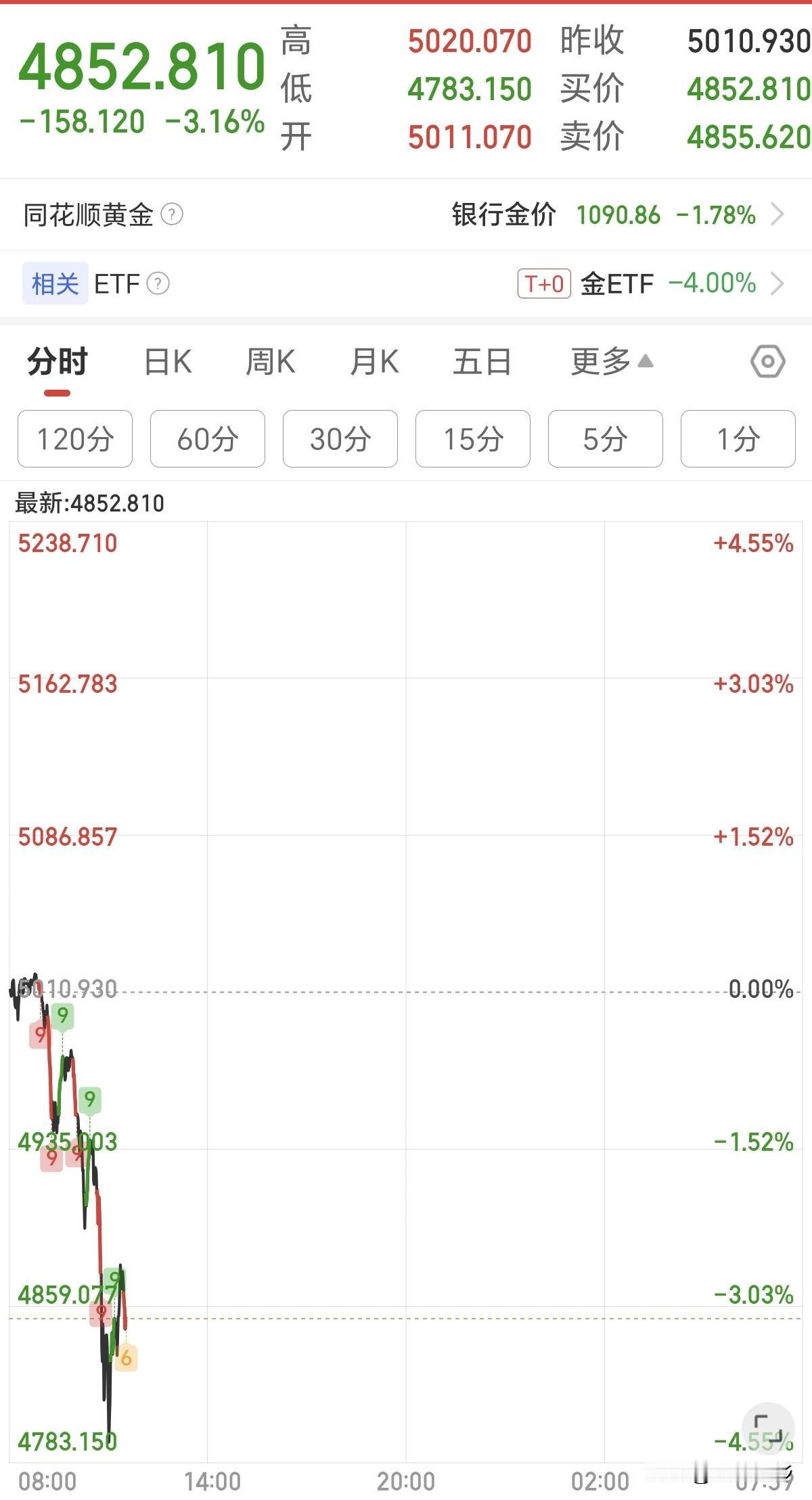 最近这几天的黄金和白银是上蹿下跳的,昨天还在5000多,睡了一觉起来4800了,我要不要买点,但又害怕被挂到树梢上。 但是我觉得黄金比白银靠谱,所以我计划买黄金,下午如果能跌到4700,我就计划下手了。 不知道有没有卖黄金的朋友,给点建议,什么时候入手合适,我是一个小白,没有操作过。