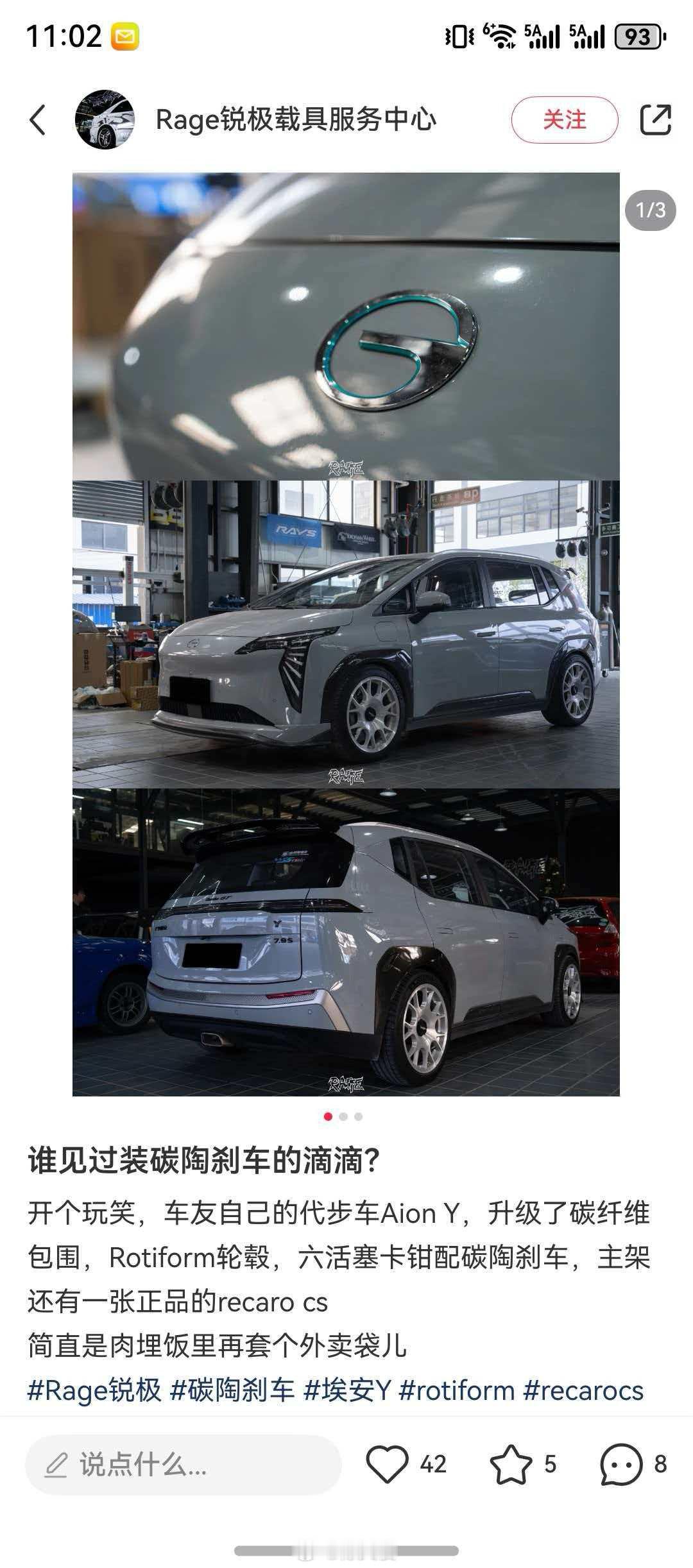 你是说理论参数136ps、轮上马力120Ps的AION Y上碳陶刹车?不是不行,只是觉得去吃大排档拿双金筷子去吃有点超纲。
