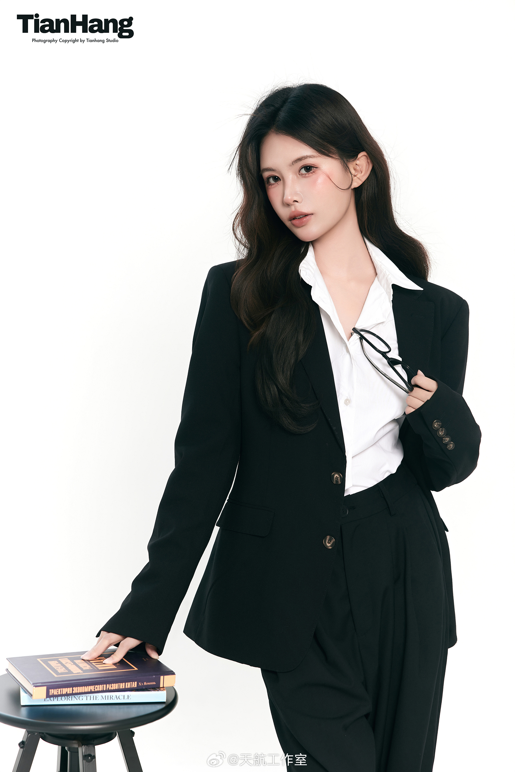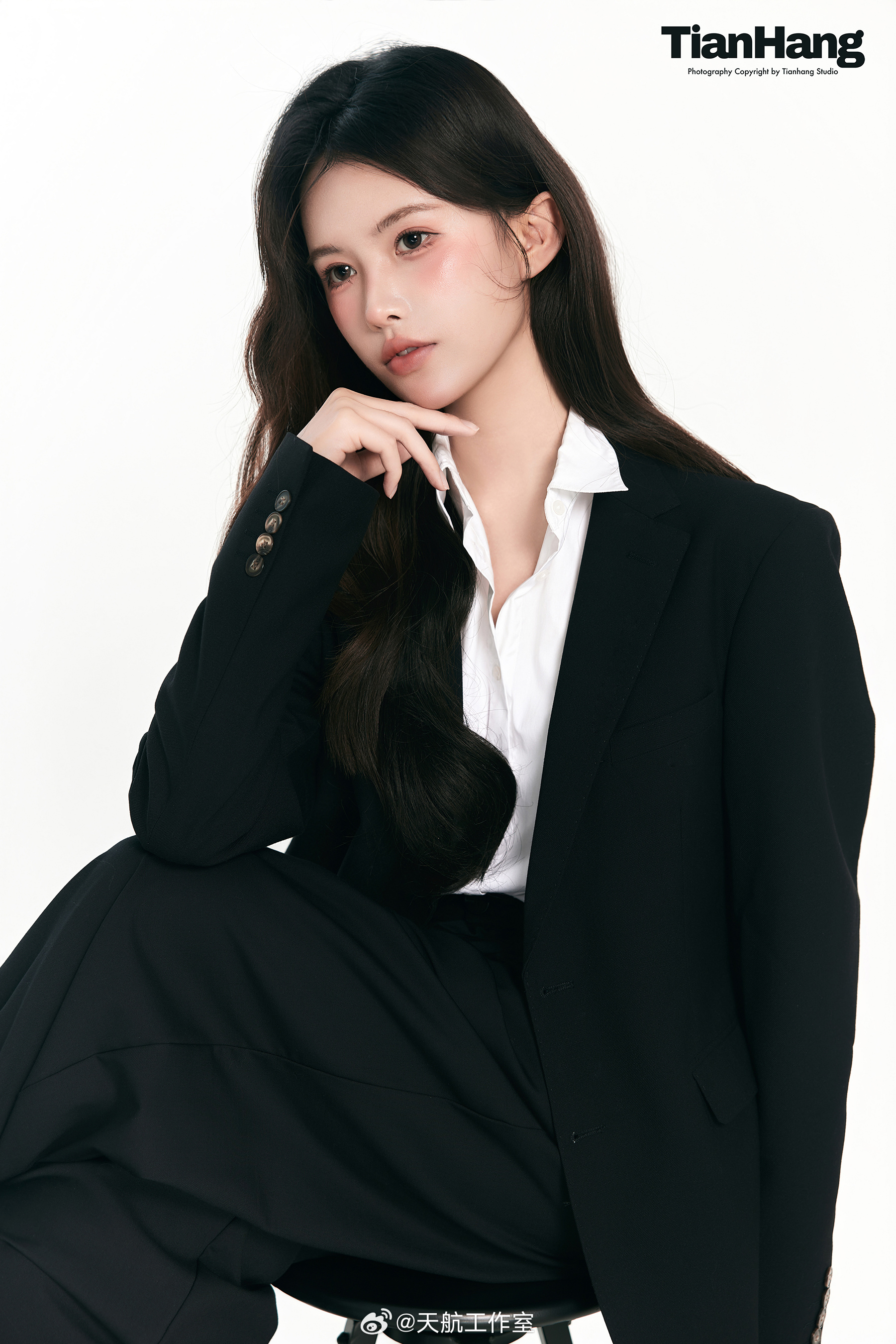 ✨棚拍客片分享Less is more · 黑白西装里的松弛感💫天航工作室韩系棚拍少女心时尚韩杂肖像天航客片