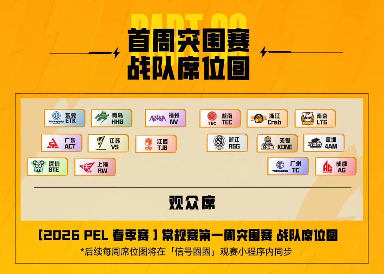 2026PEL春季赛热血开战,22支战队集结赛场同台竞技,荣都召回机制解锁全新玩法,歼灭加赛让赛场悬念拉满,全程高能值得期待!2026PEL春季赛开赛