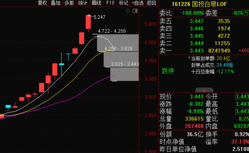 国投白银 LOF 四连一字跌停,当前溢价率仍 37.13%,五六个板大概率!我们不聊行情与对错,单从投资工具来说一说。目前国内合规、又适合普通的门槛的工具很多,ETF/LOF、股票、期货、期权等。看多看空,看不涨看不跌等方向都可以。而LOF的高溢价率就不应该是首选工具,本轮创纪录行情波动剧烈,带来的是高波动率高溢价,这个时候应该首选期权。