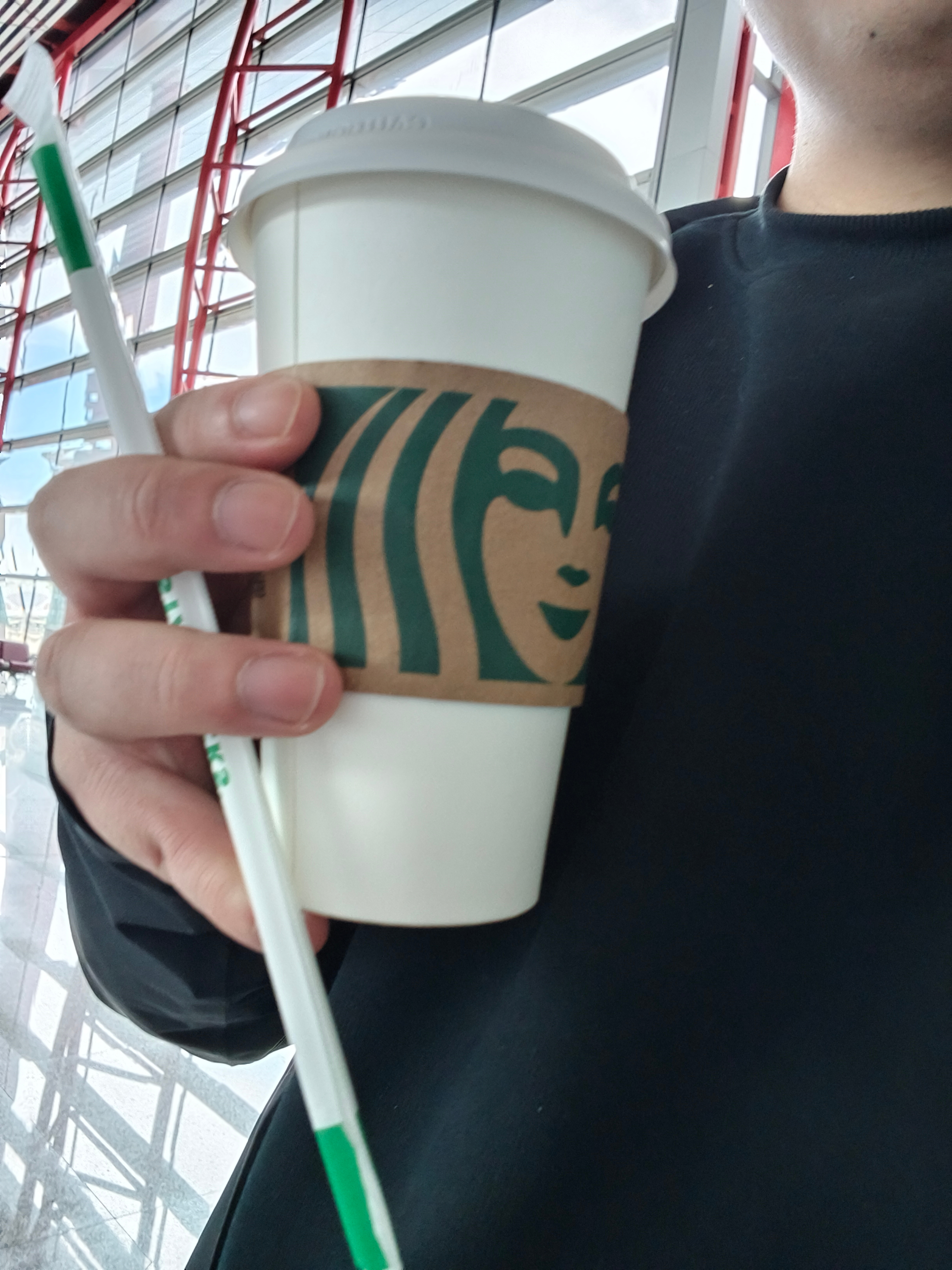 上飞机前买了杯热美式,想着装一下拍张照片,上飞机后,30块钱的星巴克热美式,2