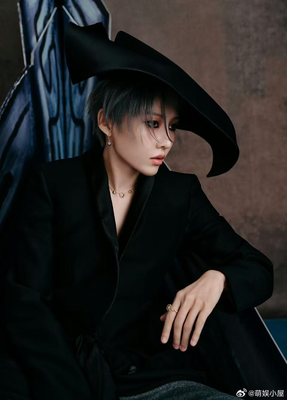 刘雨昕复古宽檐帽刘雨昕这次走的摩登复古风真的很适合她,微博之夜的造型优雅中带着