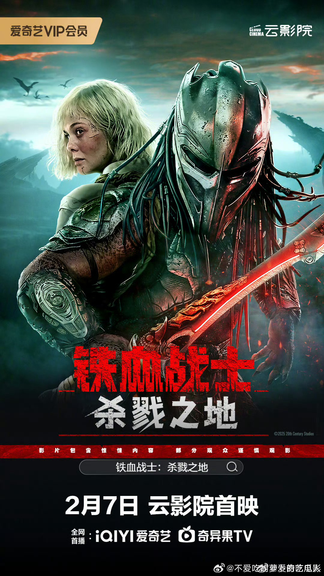 去年11月上映的电影铁血战士:杀戮之地网播定档2.7,豆瓣评分7.4。