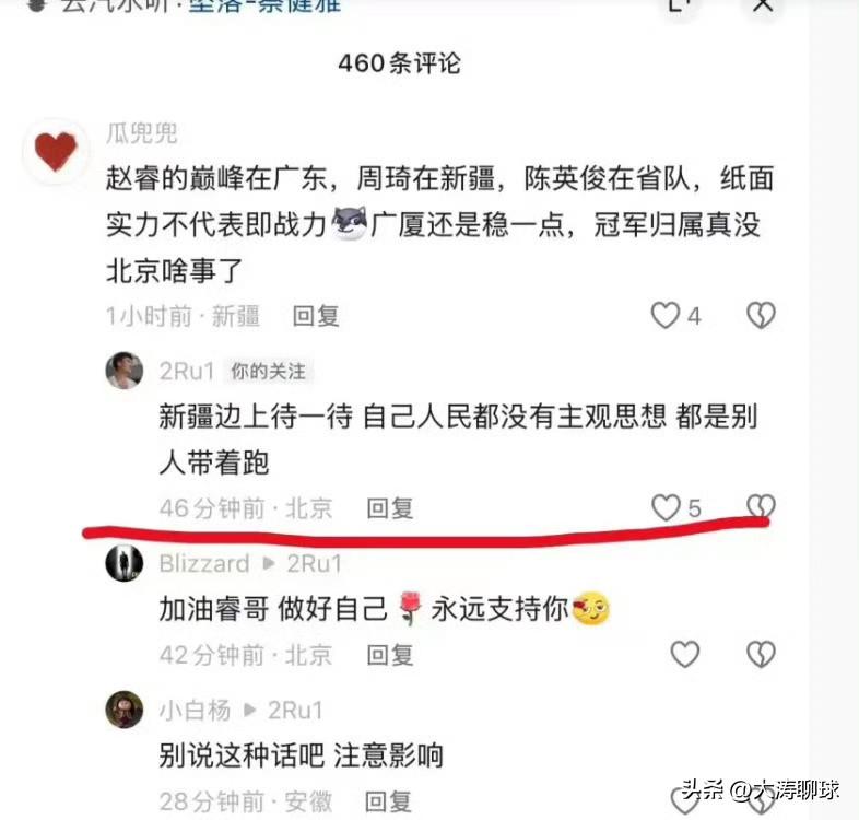 赵睿陷舆论风波!在2026年2月1日北京男篮输青岛男篮后,赵睿在抖音账号回复新疆IP的球迷时说“新疆边上待一待,自己人民都没有主观思想,都是别人带着跑”、“回去打馕吧”此言论一出,瞬间引发热议,官媒,新疆维吾尔自治区政府新闻办发文《粉丝撑起你,别伤了他们的心》,直接将赵睿推向风口浪尖!