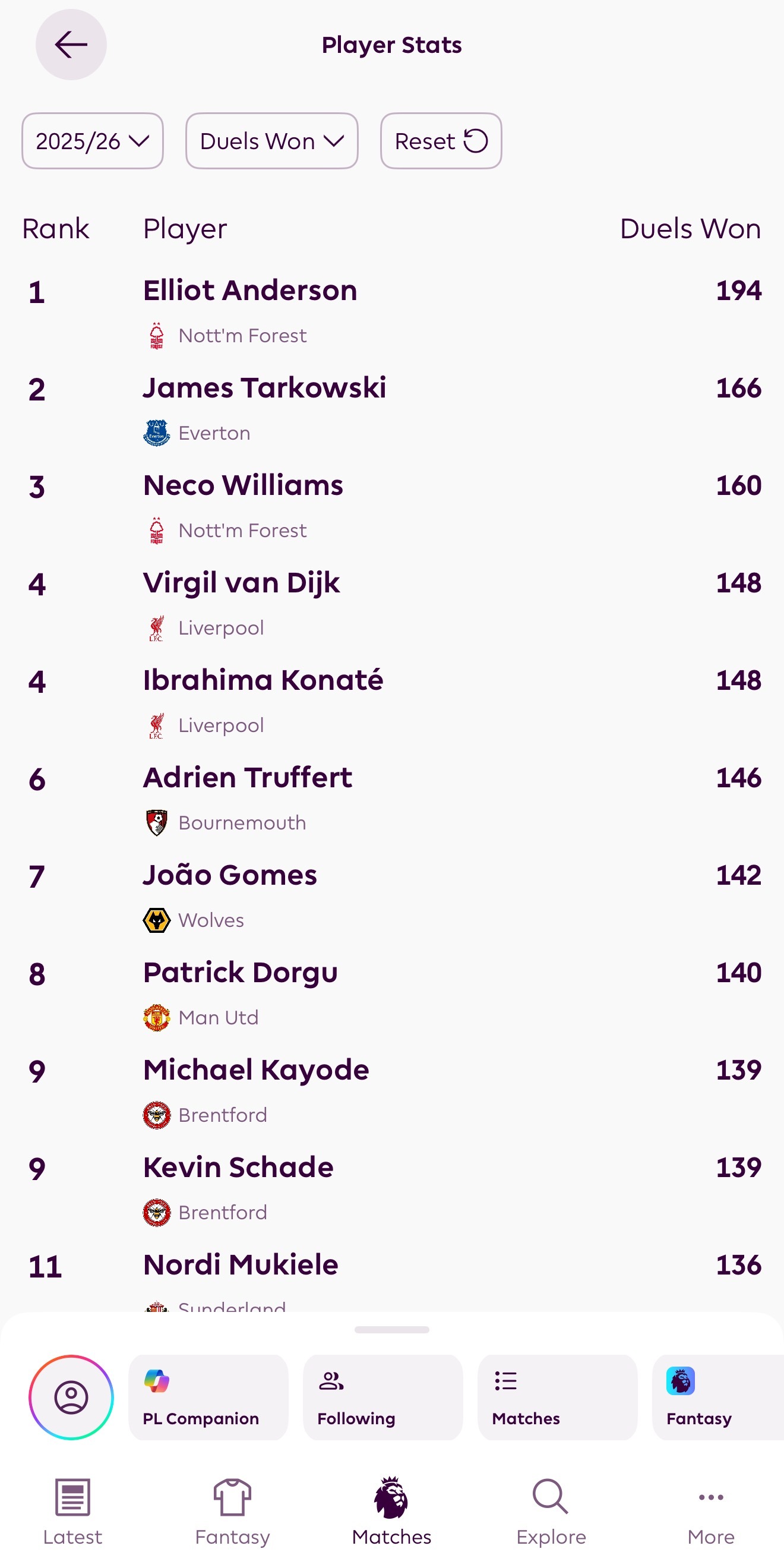 Andersen这个赛季传入三区数据第一180然后恐怖的是他本赛季的duel成功也是英超第一