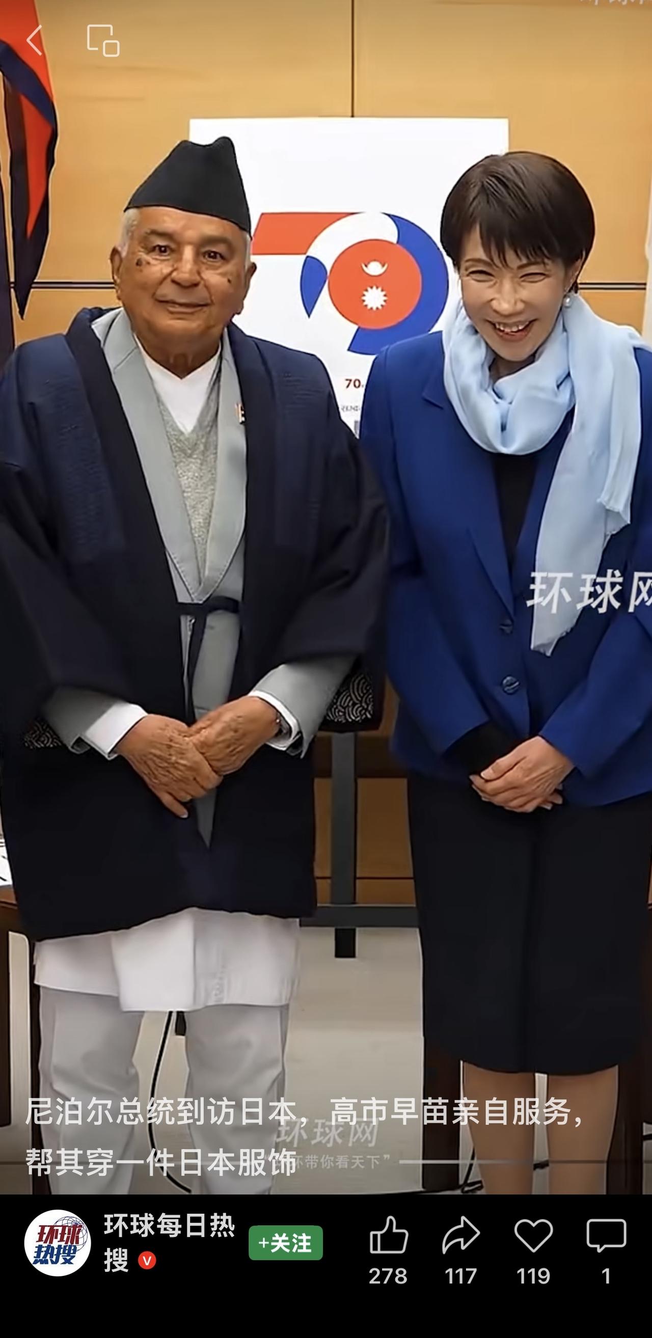 鲍徳尔回赠了一条丝巾。 高市早苗高兴的说“真漂亮。”