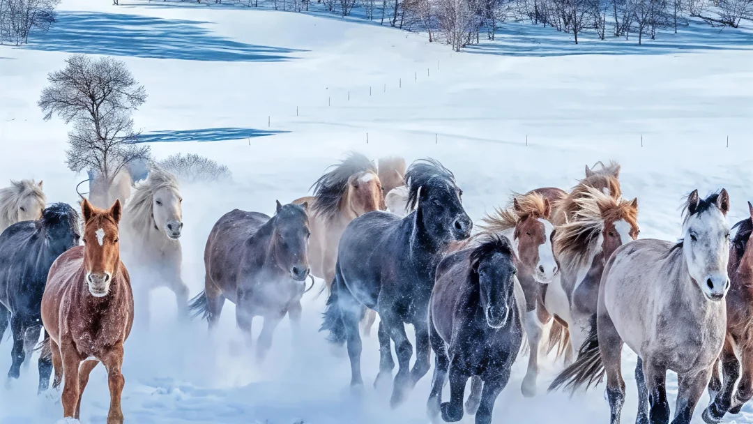 - 第一次见雪地奔马🐴!鬃毛上挂着冰晶的黑马从眼前掠过,蹄子踏碎积雪的声音超治愈🌨️,同行的小伙伴直接看呆🤯
