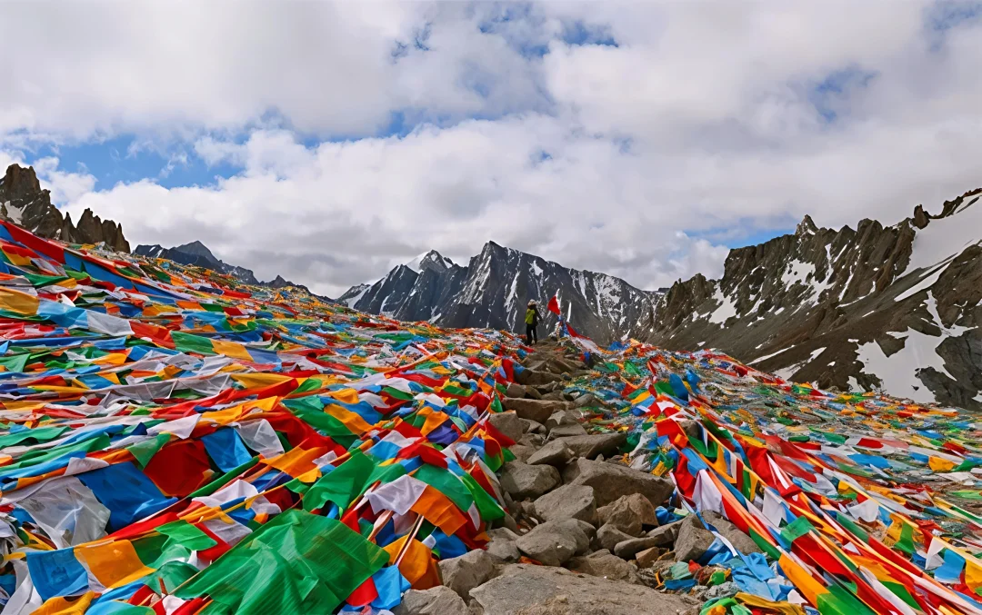 - 经幡广场:挂满五彩经幡的玛尼堆,风一吹超治愈🌈