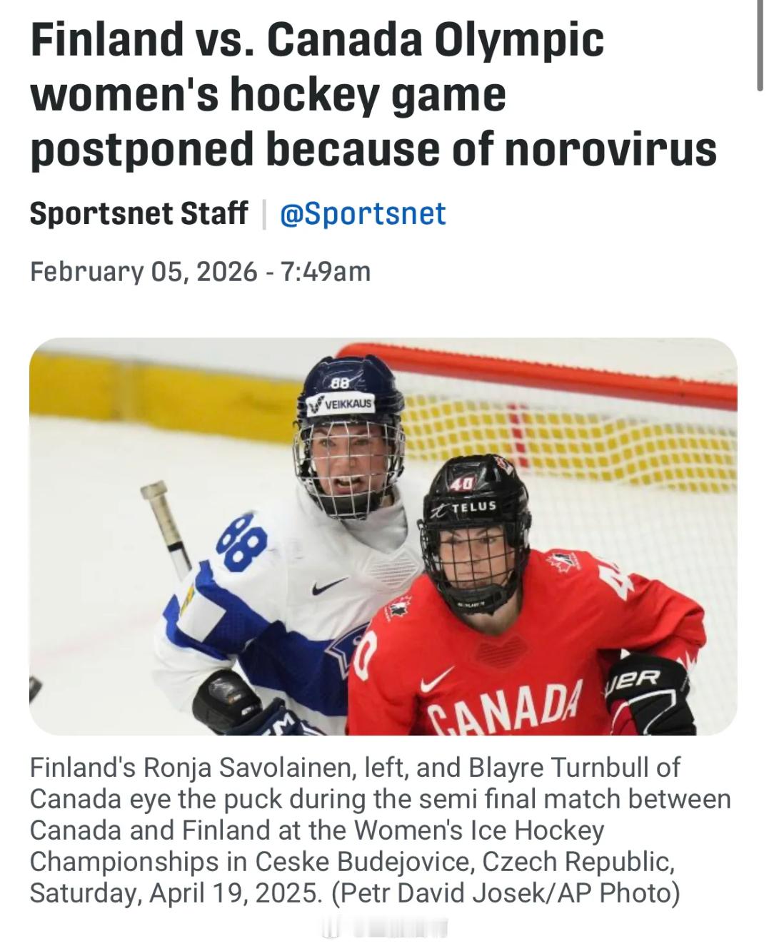 什么!?米兰冬奥会女子冰球项目 芬兰对加拿大因诺如病毒感染推迟运动员都要保护好自己啊!!!!!全民聊冬奥v观冬奥会体育大拜年