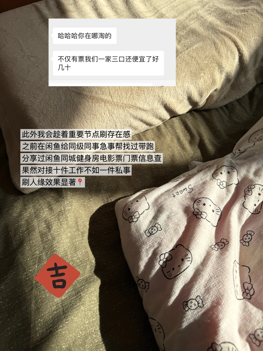 体制太多民主测评,认清自己的活很重要,同级最容易结仇的就是工作无边界,导致工作量和功劳对不齐被吐槽。此外我会趁着重要节点刷存在感[电影R]之前别的地方到处买不到合适的,最后还是在闲鱼给同级同事选到过小众球队签名衫,急事帮找过带跑,分享过闲鱼同城健身房电影票门票信息查。果然对接十件工作不如一件私事,刷人缘效果显著。