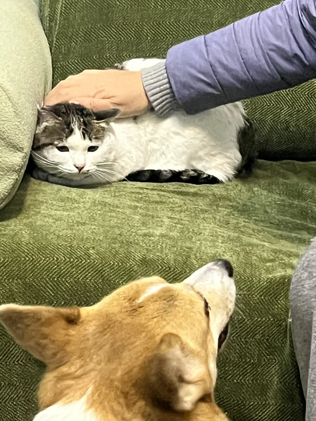 3.大灰灰 2026年10月救助,主动来我家求助的重伤流浪猫,来的时候后背一整块皮都没有了,两次住院 一次手术 ,后背长不出来毛了 不抱希望的找领养中