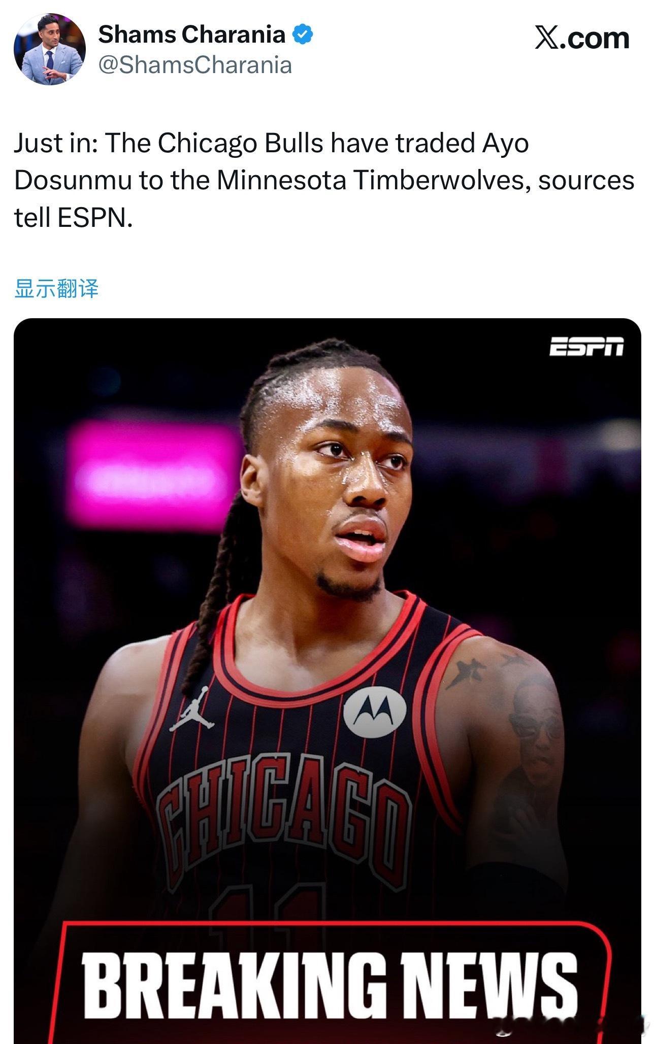 Shams:多森姆被公牛交易到森林狼!!公牛得到迪林厄姆和伦纳德·米勒加4个次